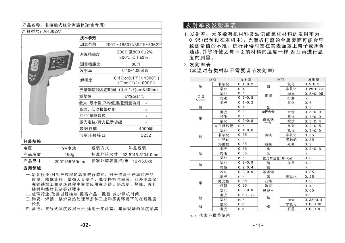 SMART SENSOR AR882A+ Infrared Thermometer brochure