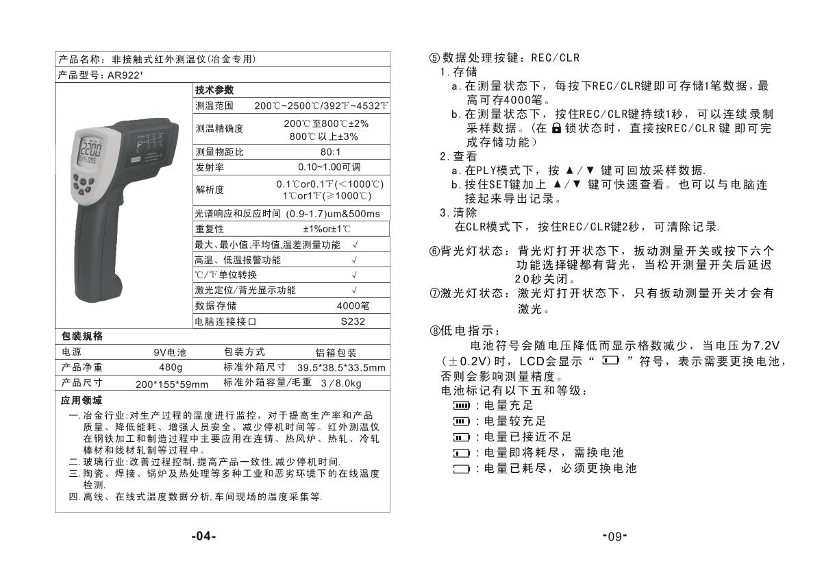 - 6SMART SENSOR AR882A+ Infrared Thermometer brochure
