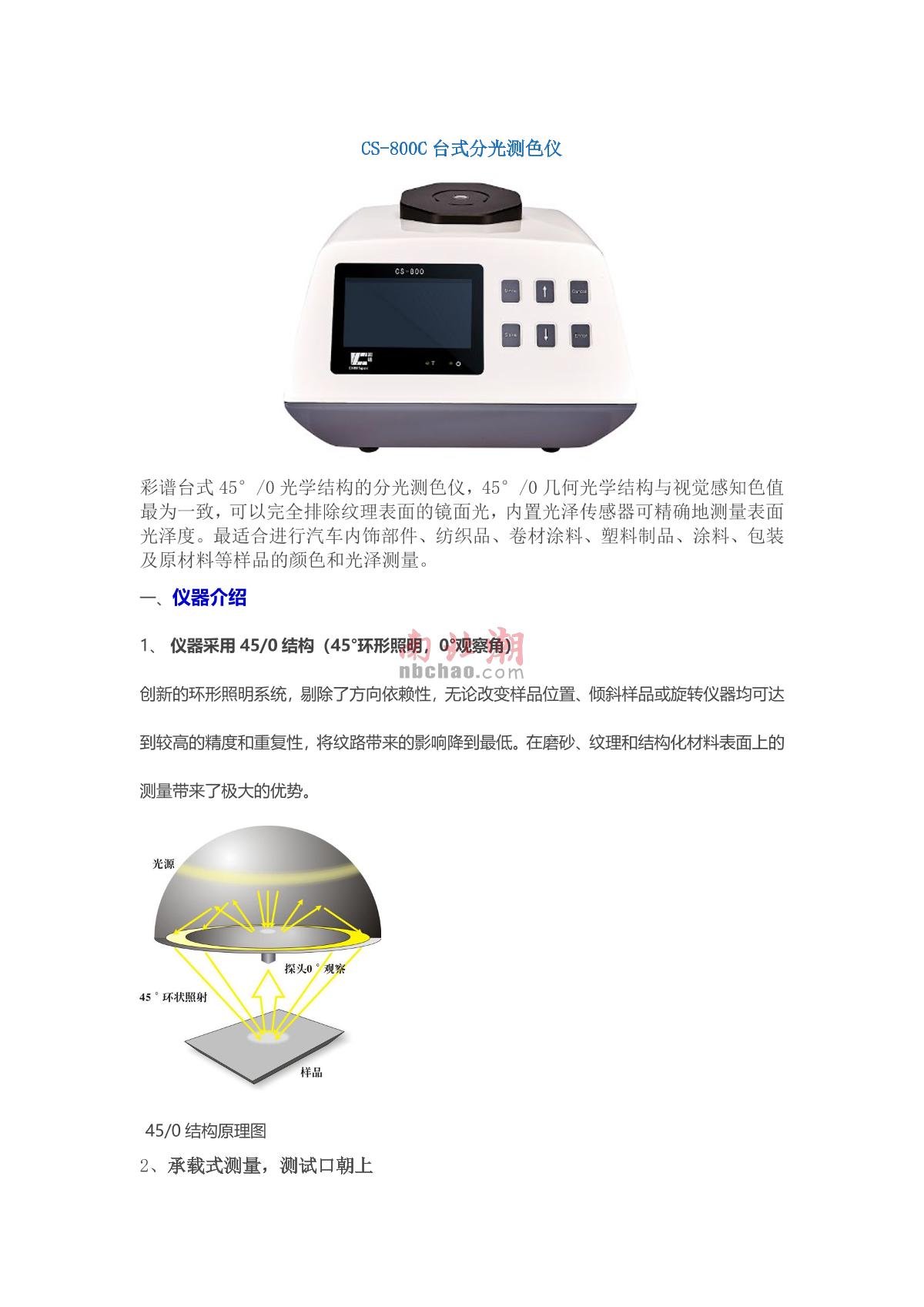 CHNSpec CS-800C Desktop 45/0 Colorimeter brochure