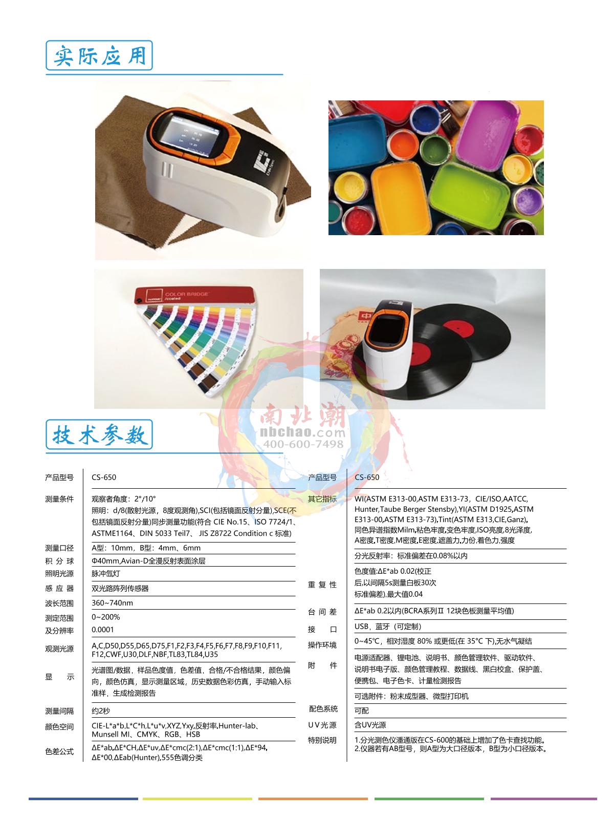 CHNSpec CS-650A Xenon arc Colorimeter brochure
