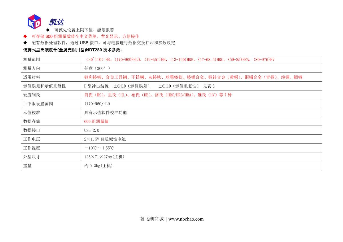 KairDa NDT280 Leeb Hardness Tester brochure