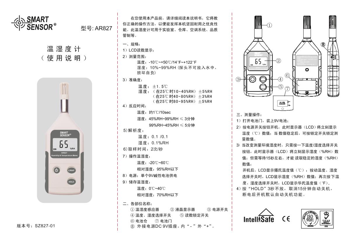 SMART SENSOR AR827 Digital Thermohygrometer Manual,OI