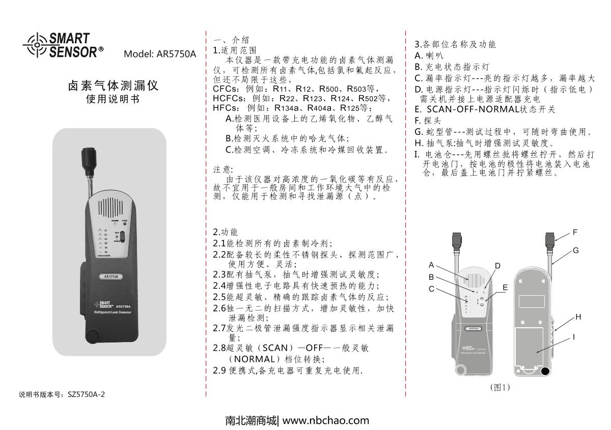 SMART SENSOR AR5750A Gas Detector halogen brochure
