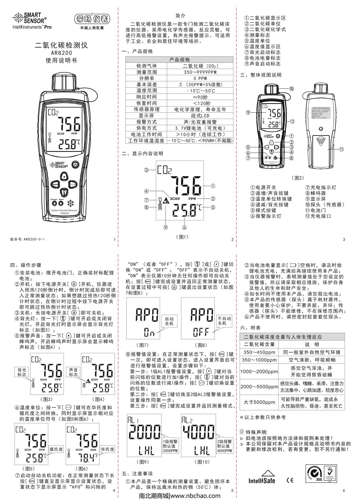 SMART SENSOR AR8200 Carbon dioxide Detector Manual,OI
