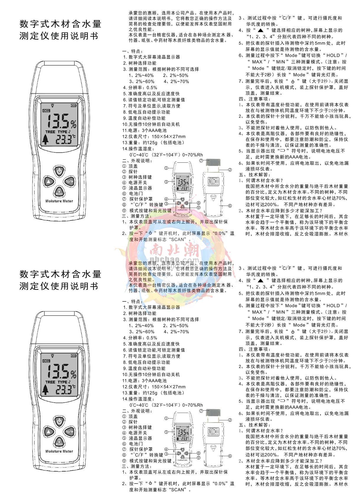- 9AMITTARI AM-128PS Needle induction dual-use wood Moisture Meter Manual