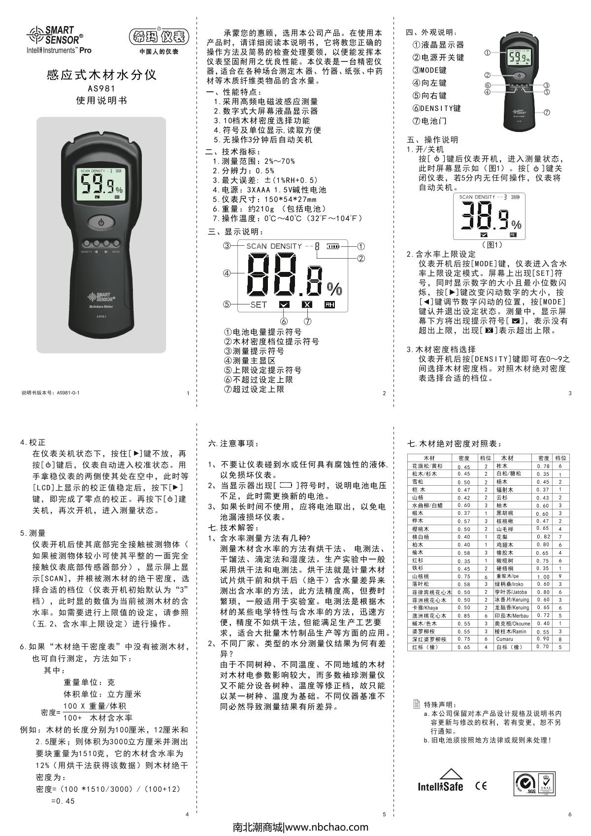 SMART SENSOR AS981 Moisture Tester Manual,OI