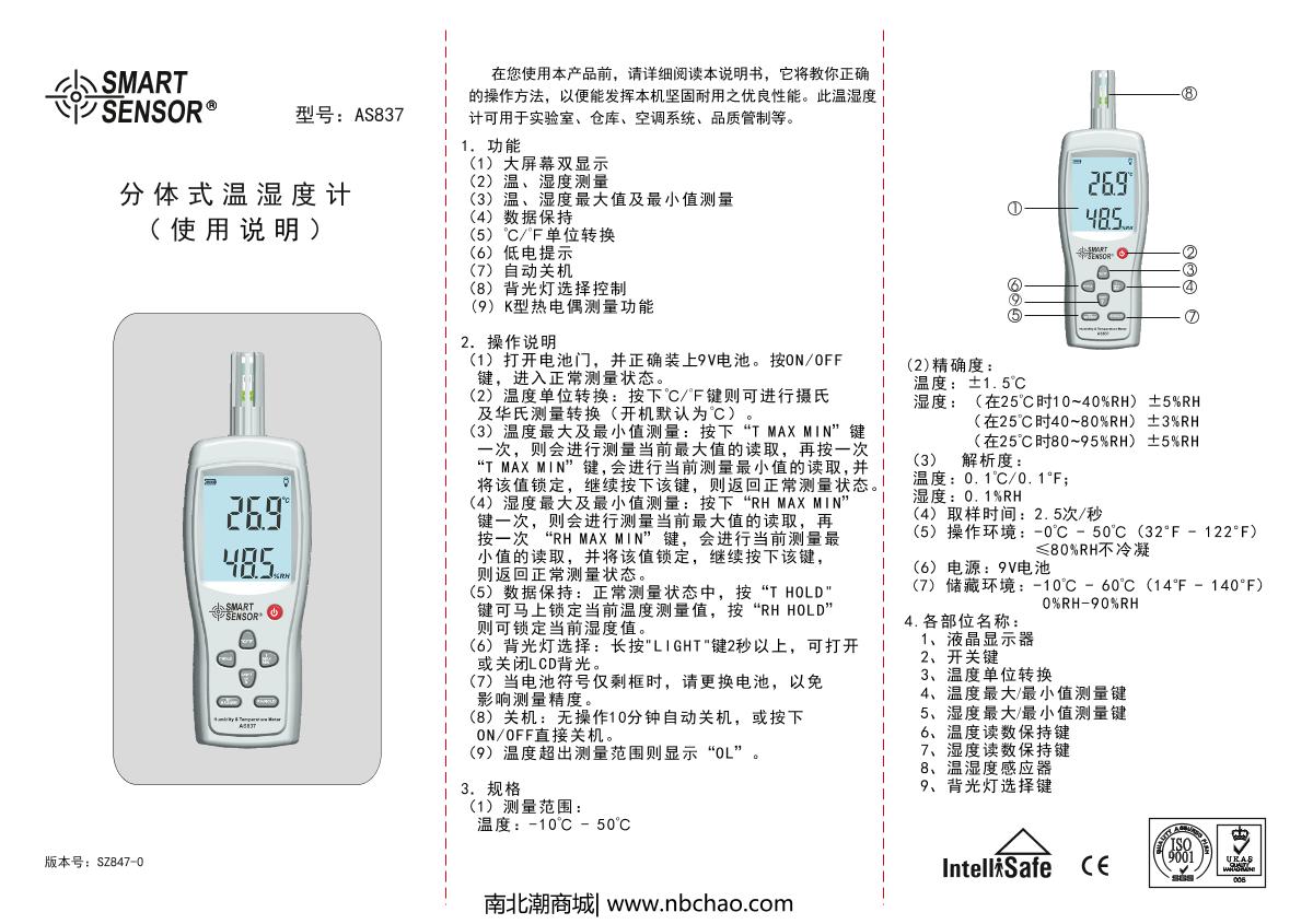 SMART SENSOR AS837 Thermohygrometer (integrated) brochure