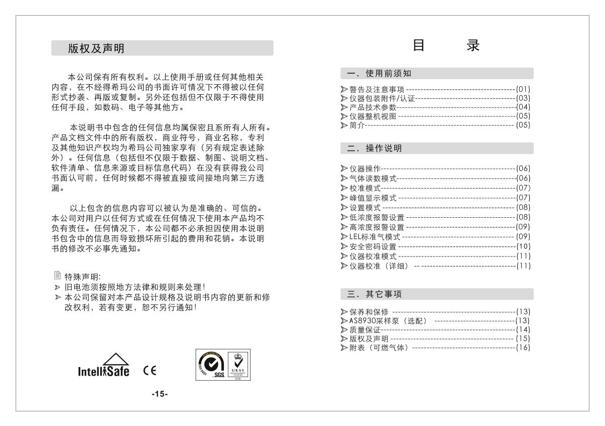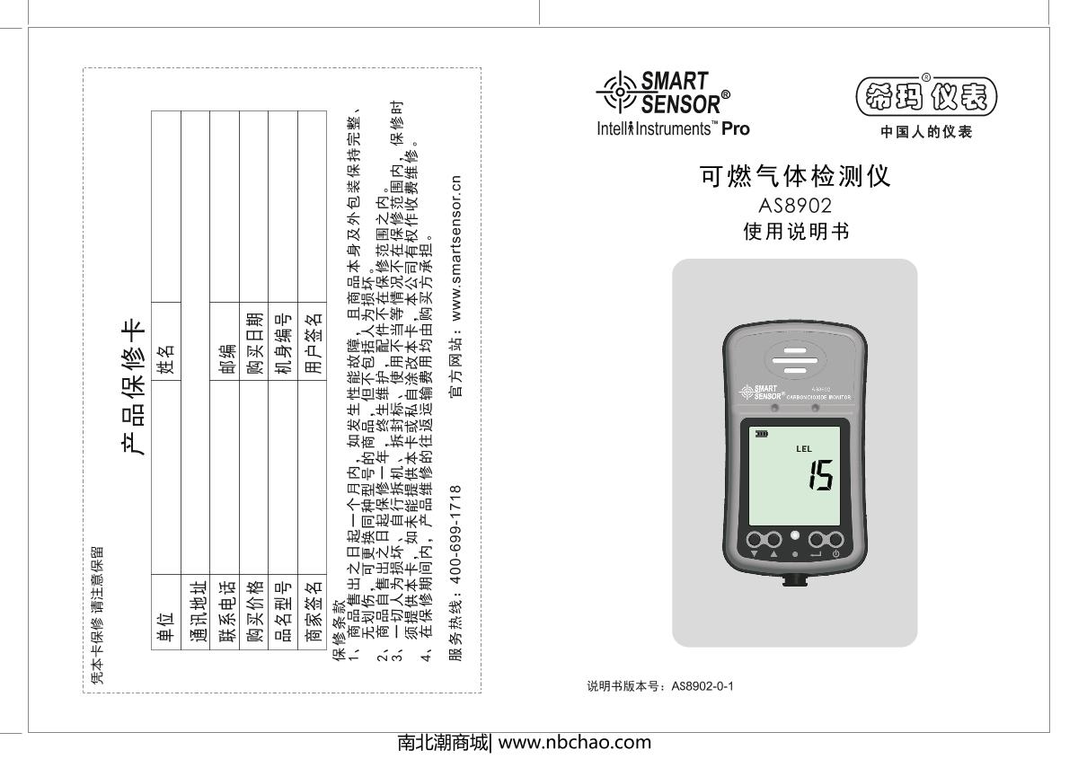 SMART SENSOR AS8902 Combustible Gas Detector (diffusion type + pump suction type) brochure