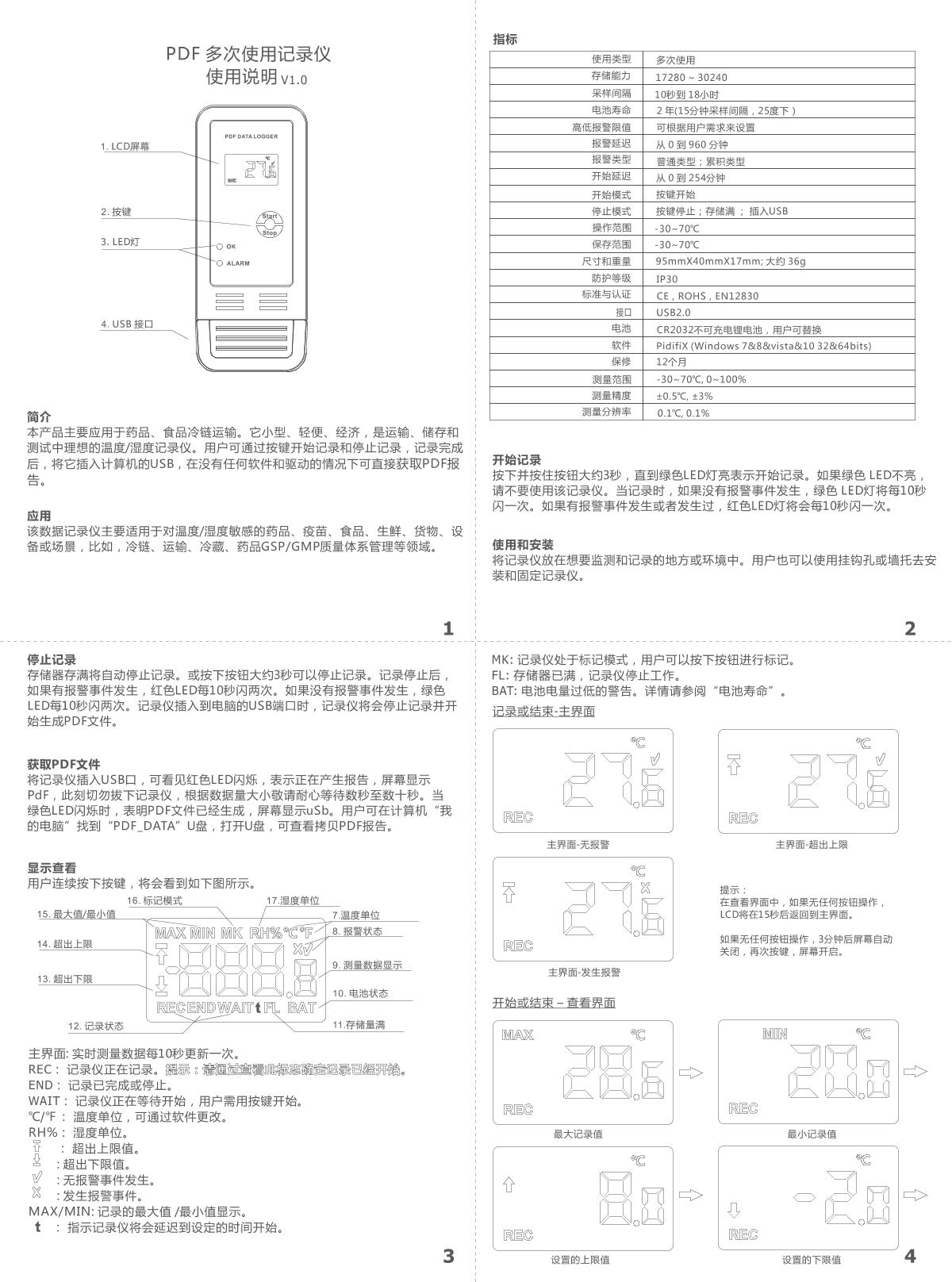 - 4YOWEXA GGL-20 Industrial Economy Temperature and Humidity Recorder Manual