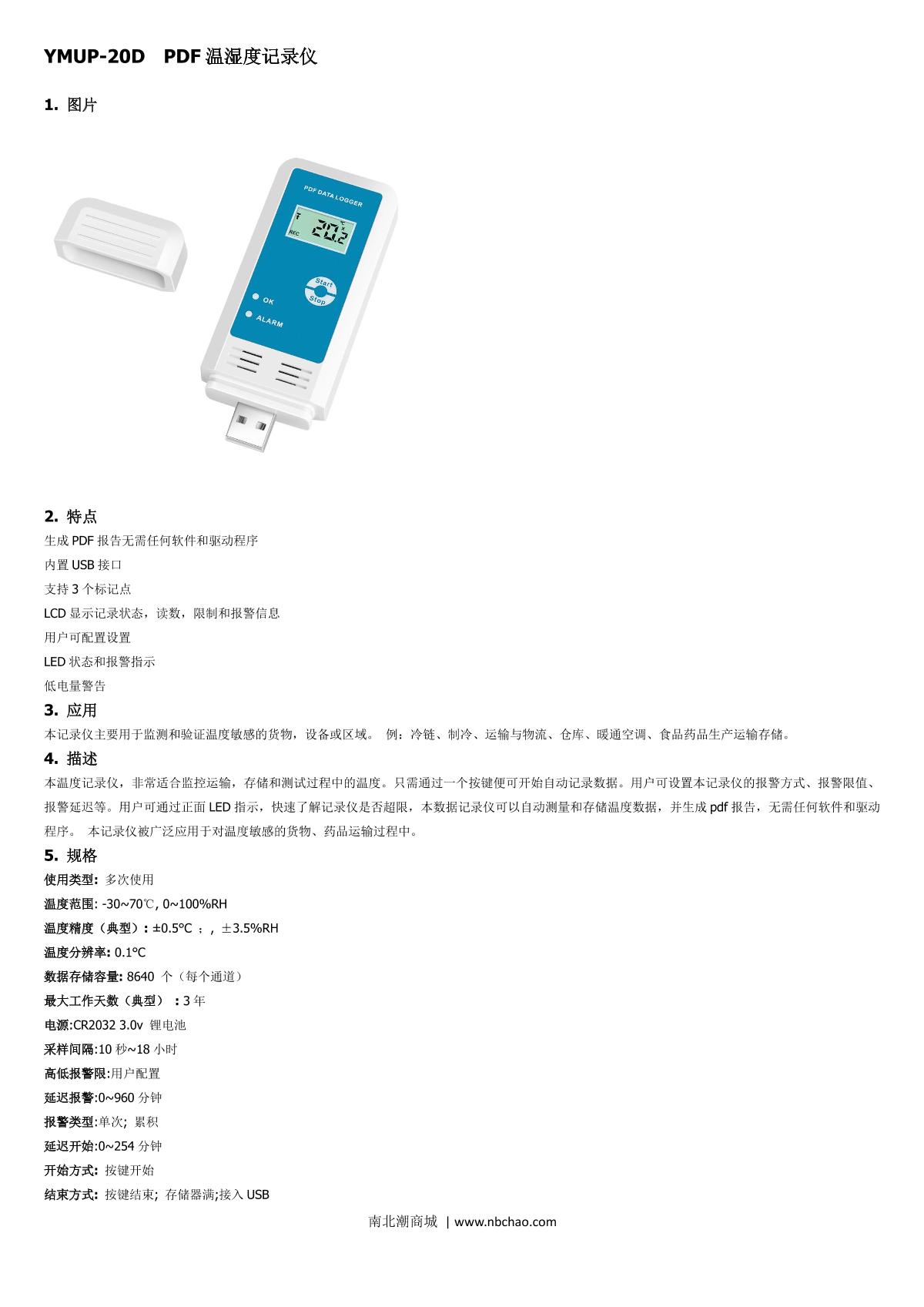 YOWEXA YMUP-20D-G Temperature and Humidity Recorder brochure