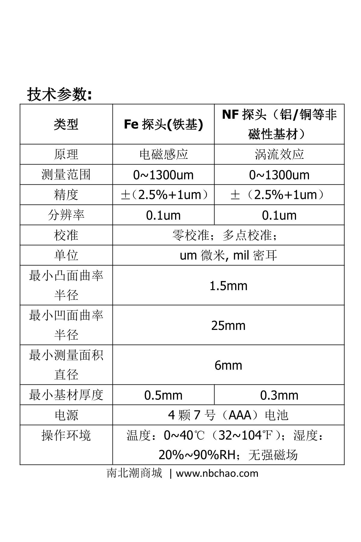 IPRE CT300 paints film thickness Measurement Instrument magnetic Induction/eddy Current dual-useF、NMagnetic Induction (F), eddy Current (N)F: 0~1500μm; N: 0~1500μm (chrome plating on copper: 0~40μm)¥1930.0SE