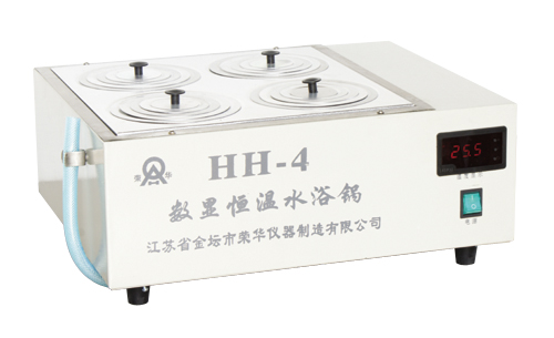 Ronghua HH-4 digital display constant temperature Water Bath, the size of the HH-4 digital display constant temperature Water Bath is 300×300×130mm, room temperature ~ 100°C, heating power 800W