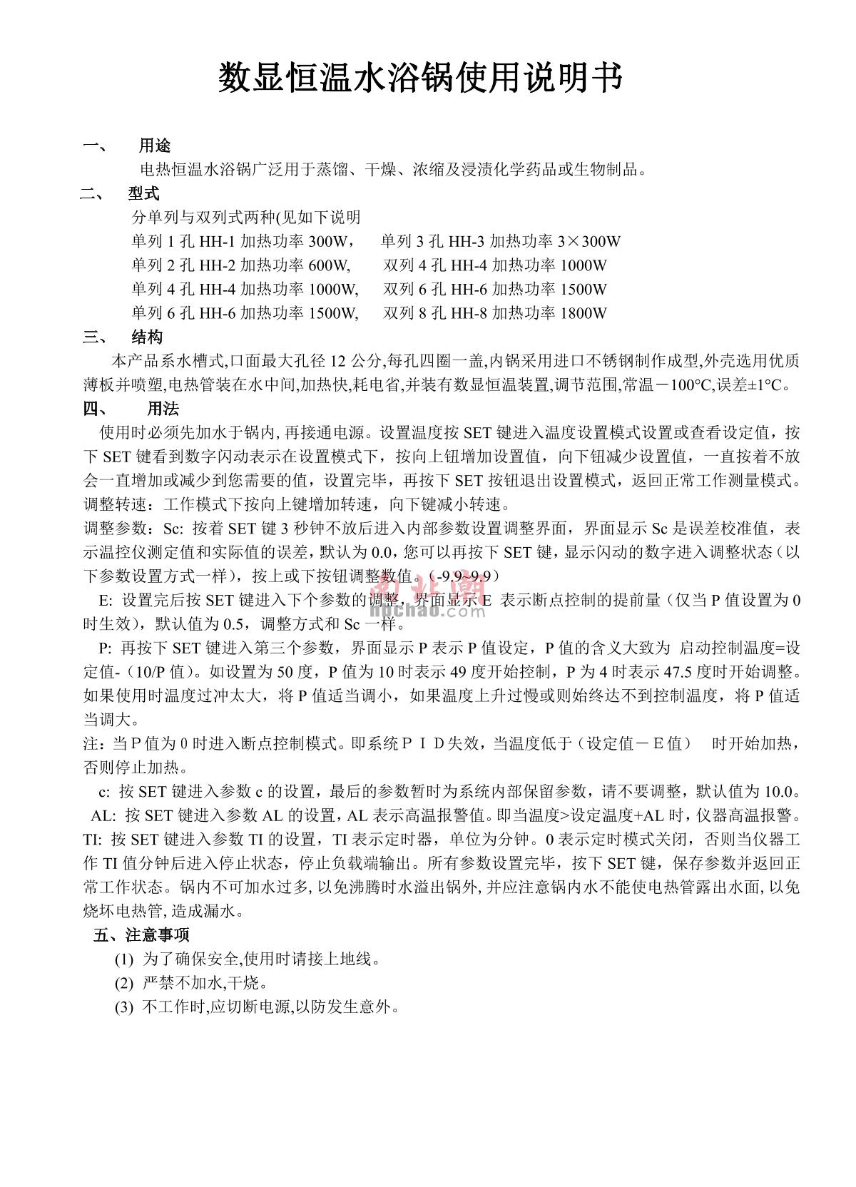- 6HongHua HH-1 Digital display thermostatic Water Bath Manual