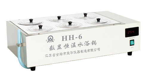Ronghua HH-6 digital display constant temperature Water Bath, the size of the HH-6 digital display constant temperature Water Bath is 470×300×130mm, room temperature ~ 100°C, heating power 1500W