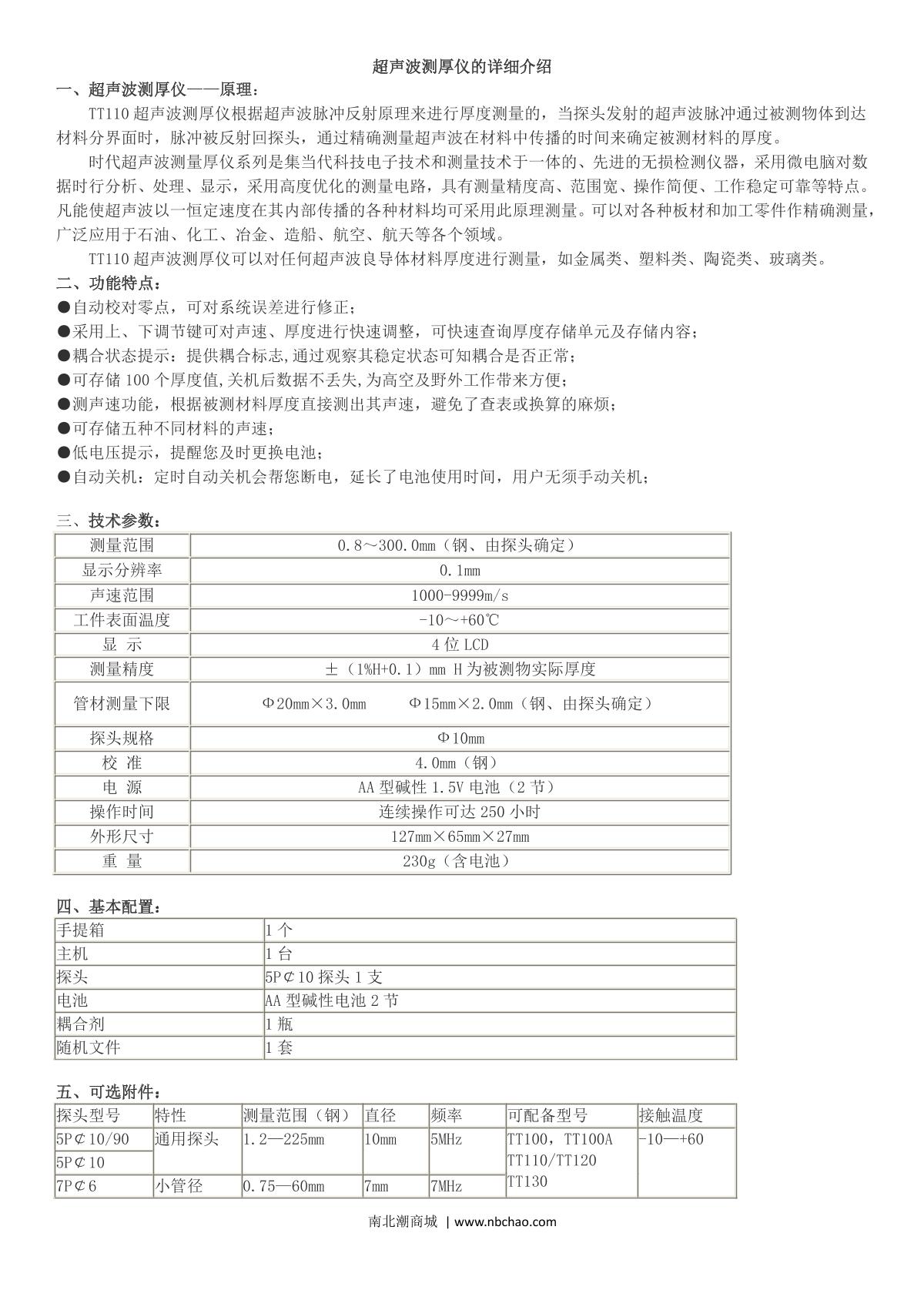 TIMES TT110 Ultrasonic Thickness Gauge brochure