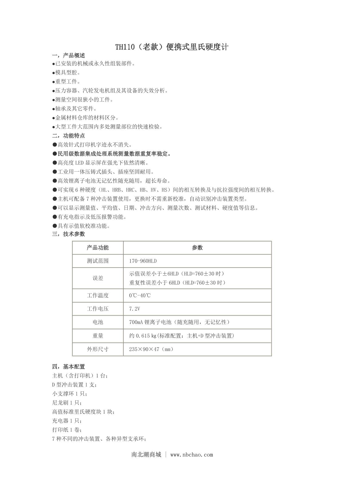 TIMES TH110 (high matching type) Leeb Hardness Tester brochure