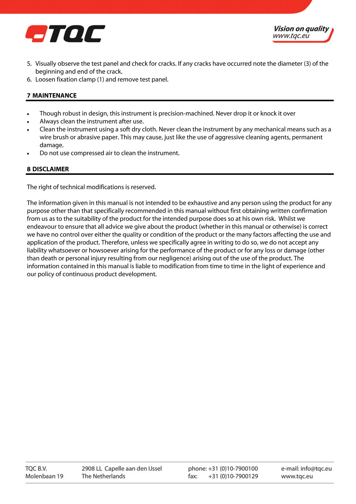 TQC sheen SP1830 Conical Mandrel Tester Manual,OI