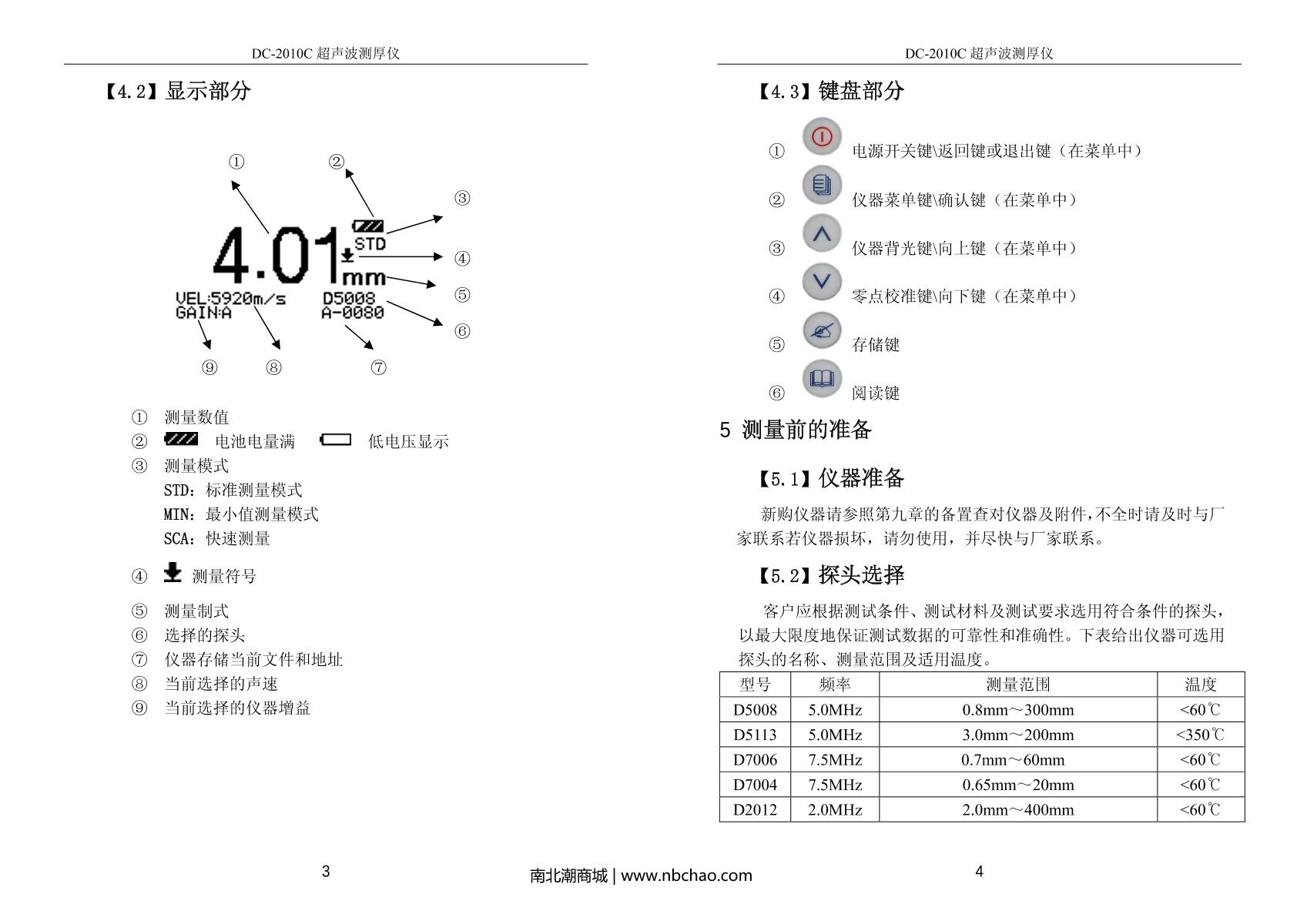 Ultrasonic Thickness Gauge DC-4000, automatic and manual measurementT~E:1.4~200mm;E~E:3.0~25mm5MHzSplit probe (D5301 penetrating coating probe)¥13520.0SE -