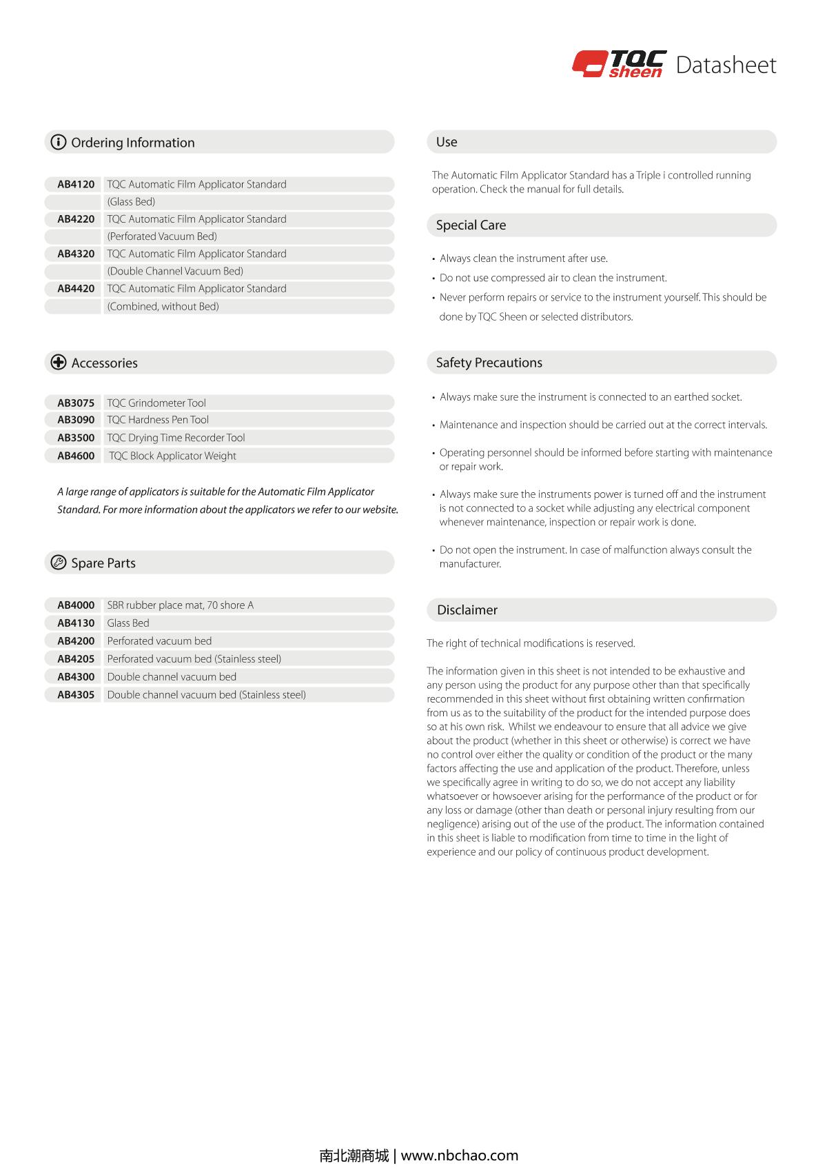 TQC sheen AB4420 Automatic Film Applicator brochure