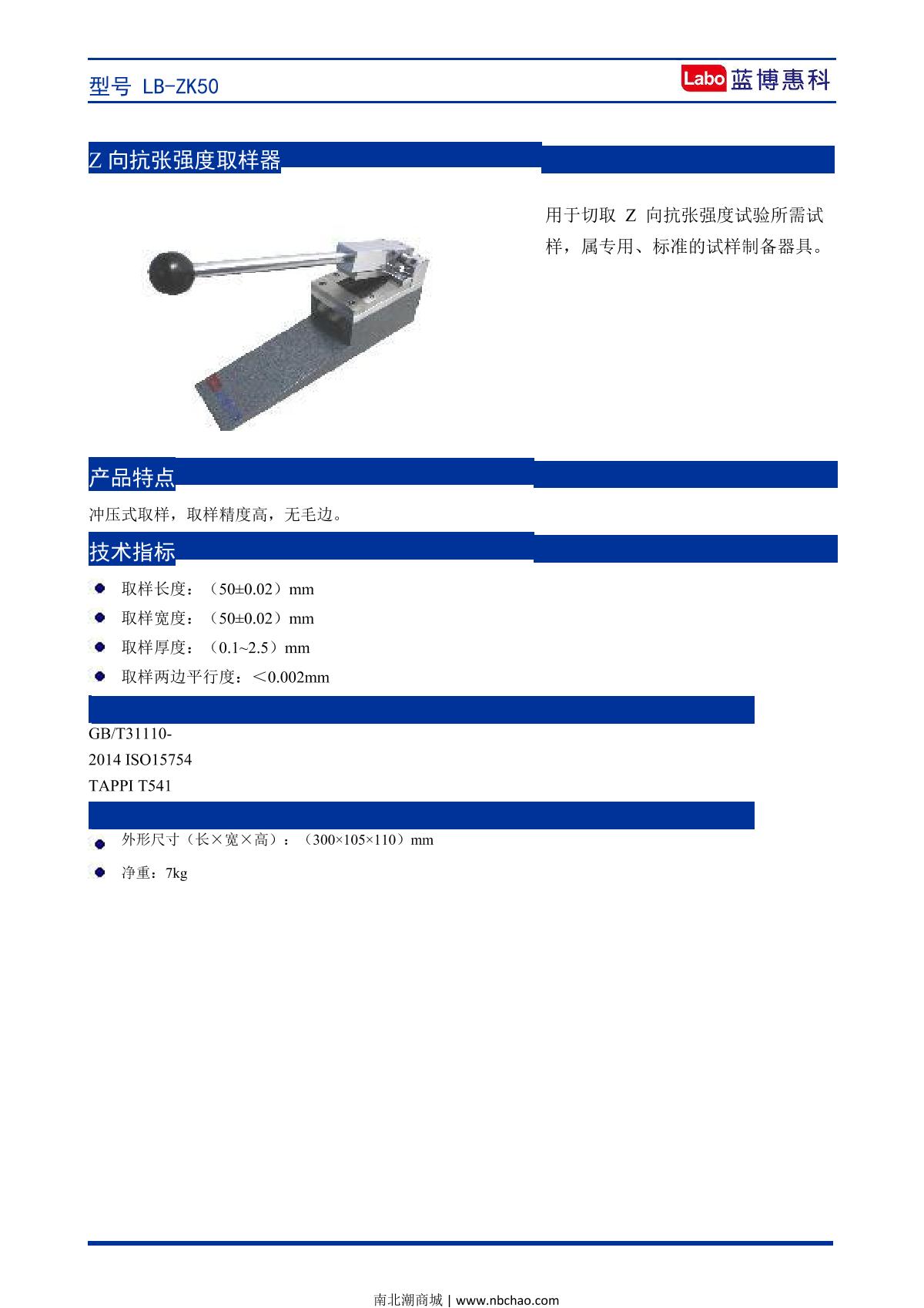 Labo LB-ZK50 Z-direction tensile strength Sampler brochure