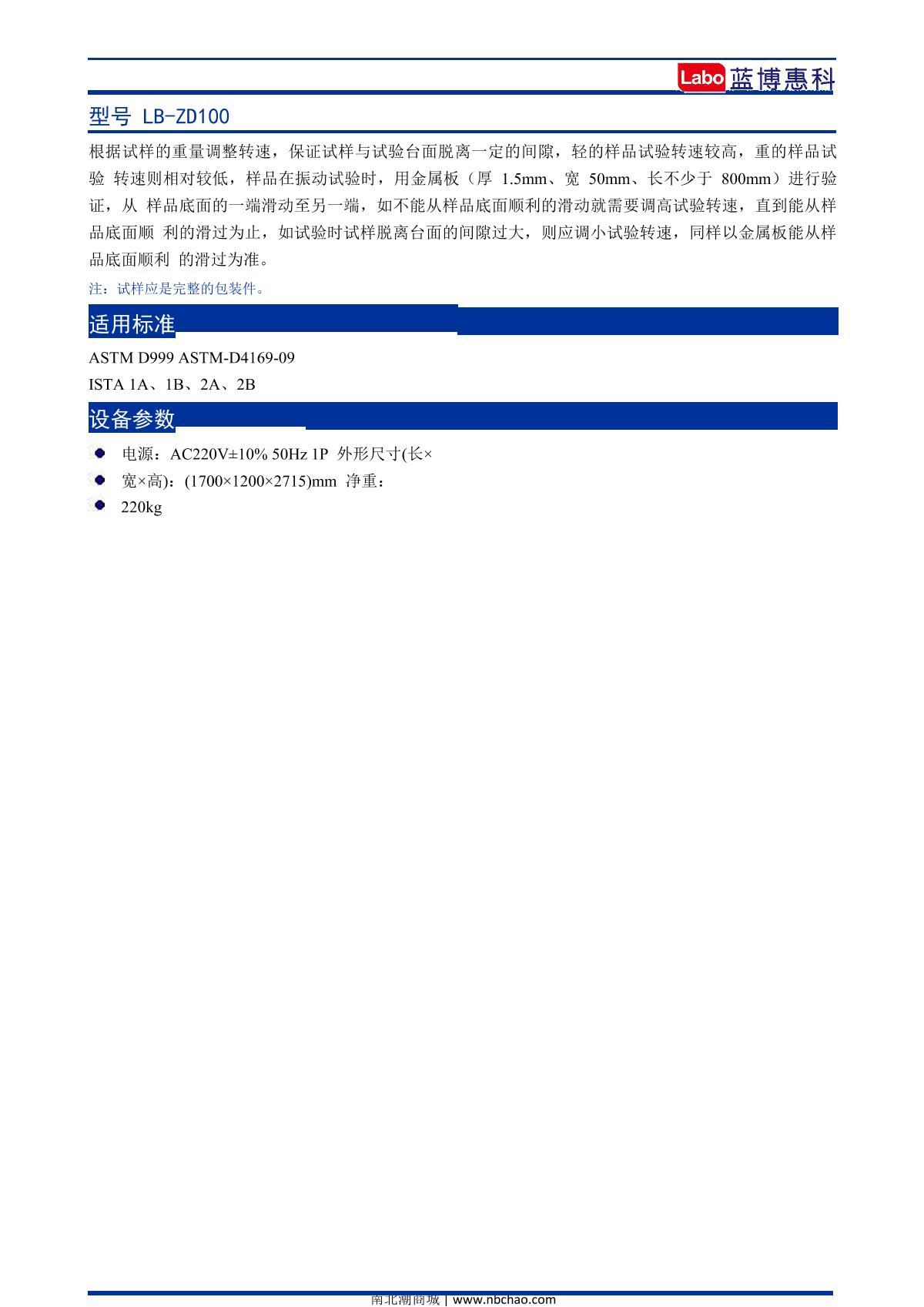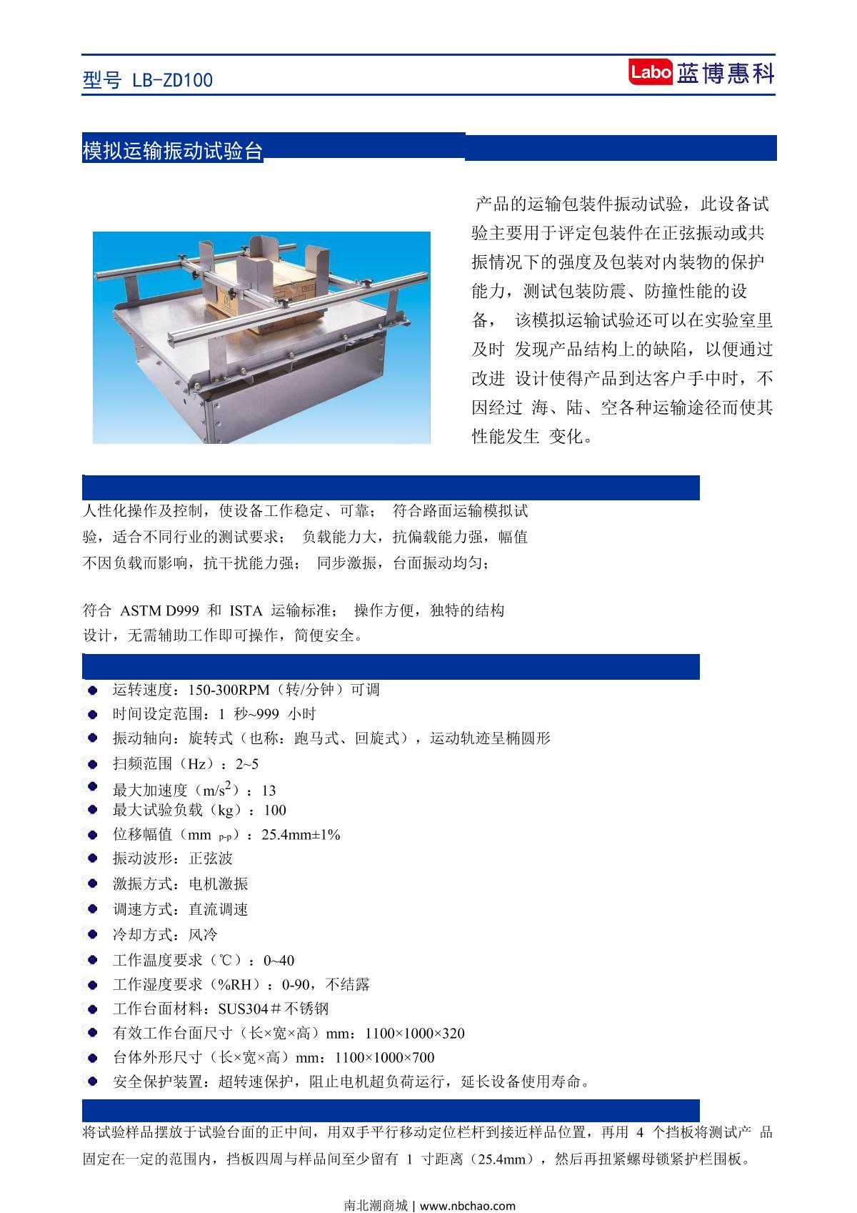 Labo LB-ZD100 Simulated transportation vibration test bench brochure
