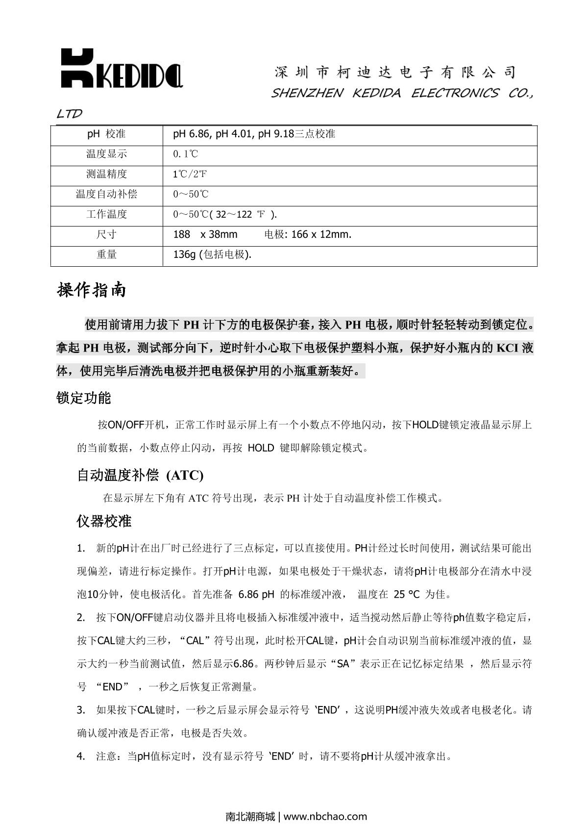 - 3SMART SENSOR PH828 Pen pH meter brochure
