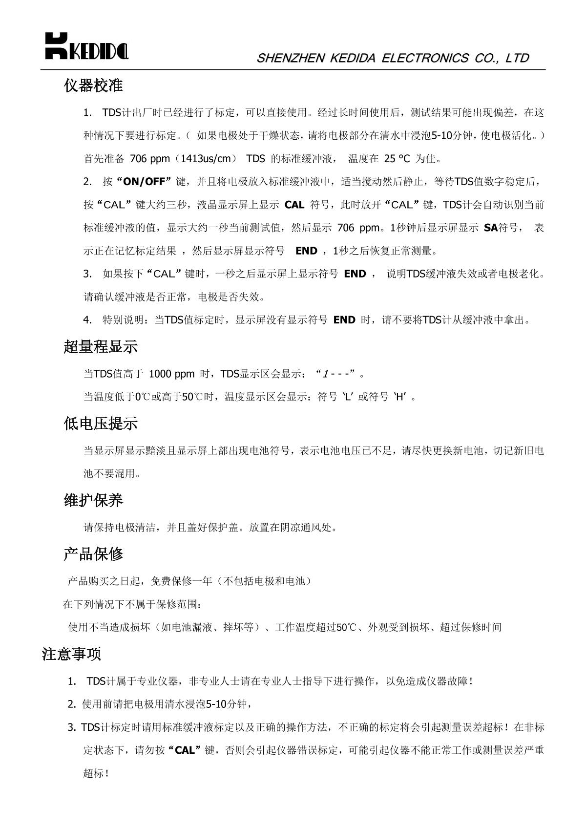 kedida CT-3060 TDS pen Manual,OI