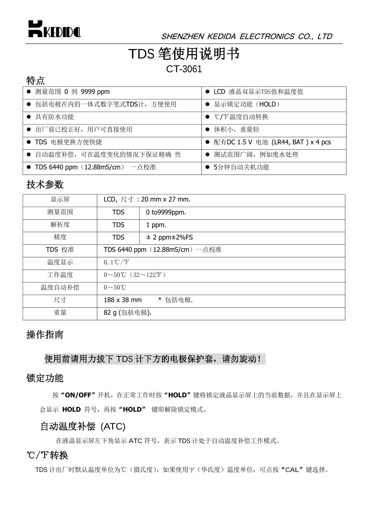 - 3Bante TDSscan10H-E Pen TDS meter Manual