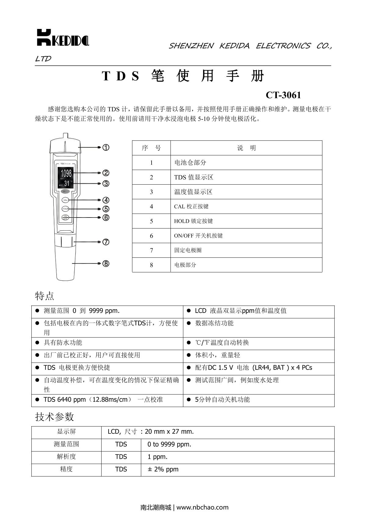 kedida CT-3061 TDS pen brochure