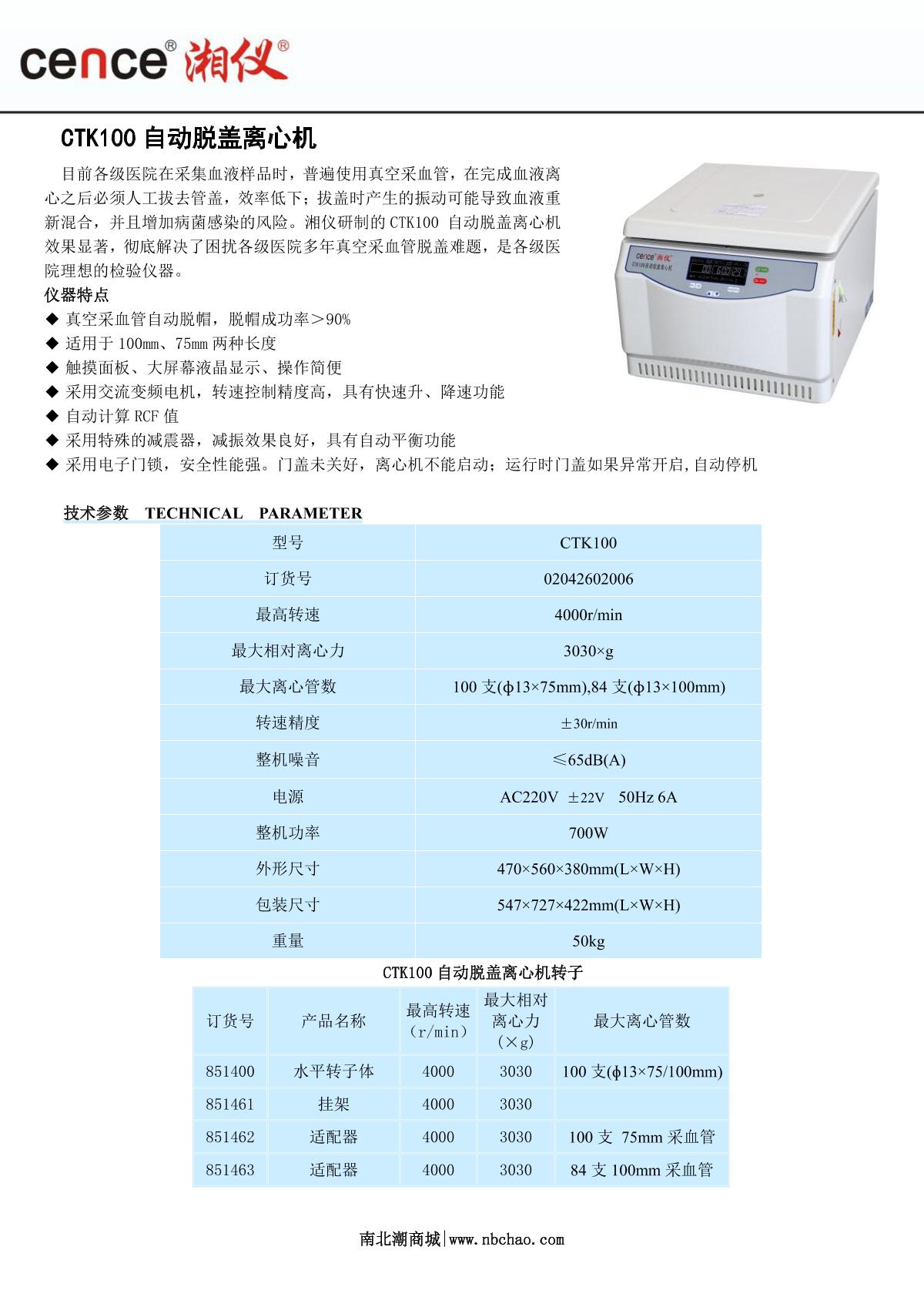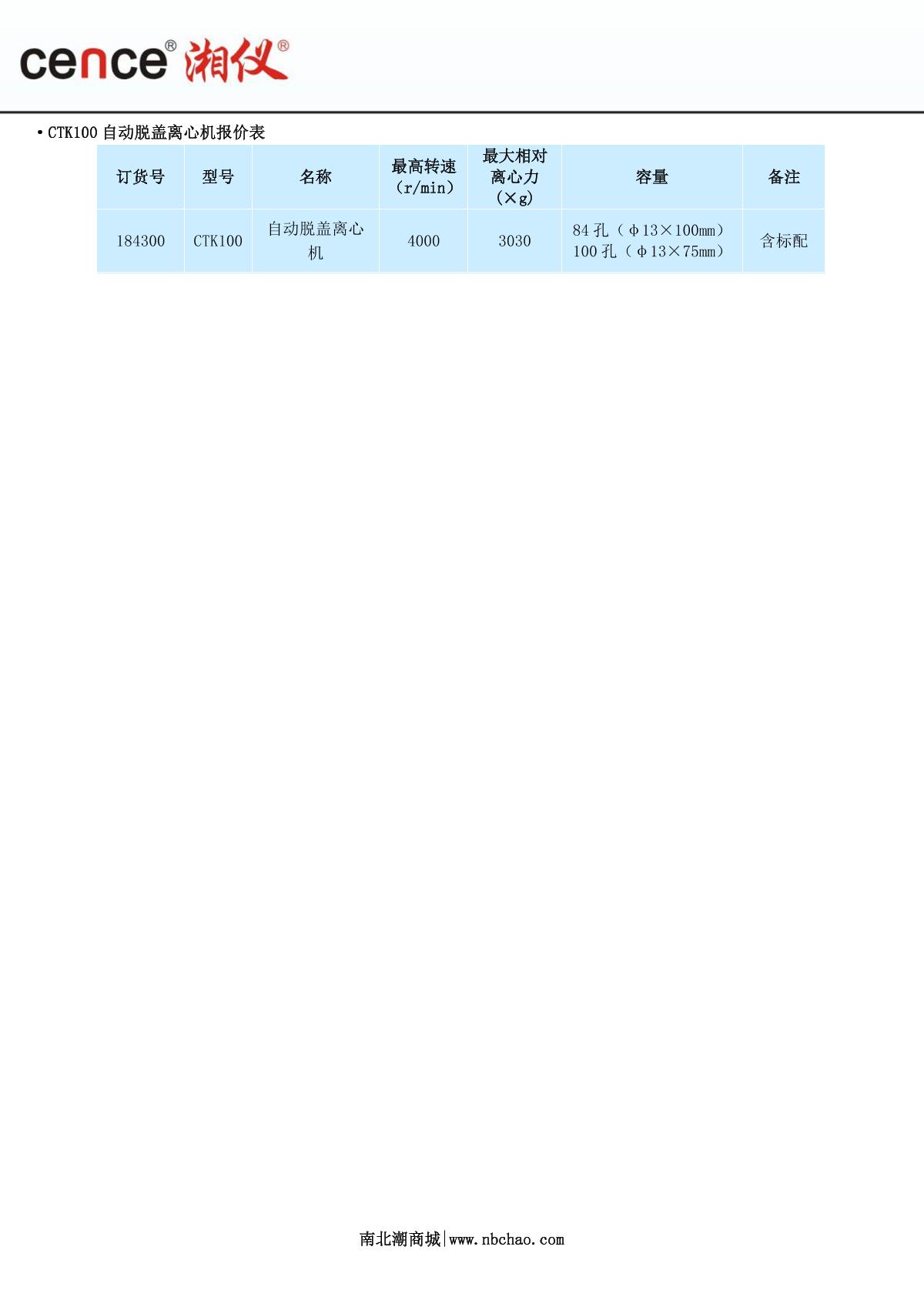 cence CTK100 Automatic Hat Removal Centrifuge brochure