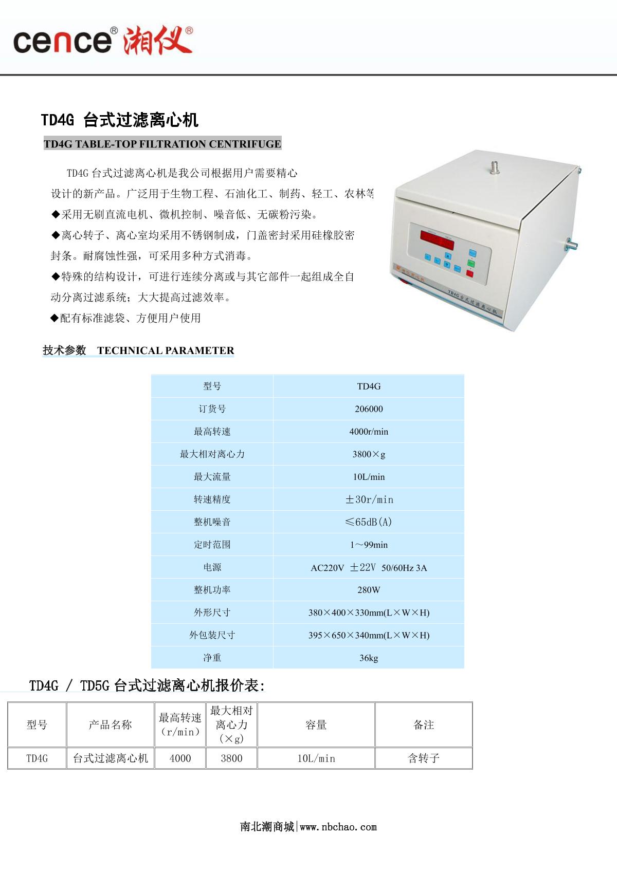 cence TD4G Desktop filtrate Centrifuge brochure