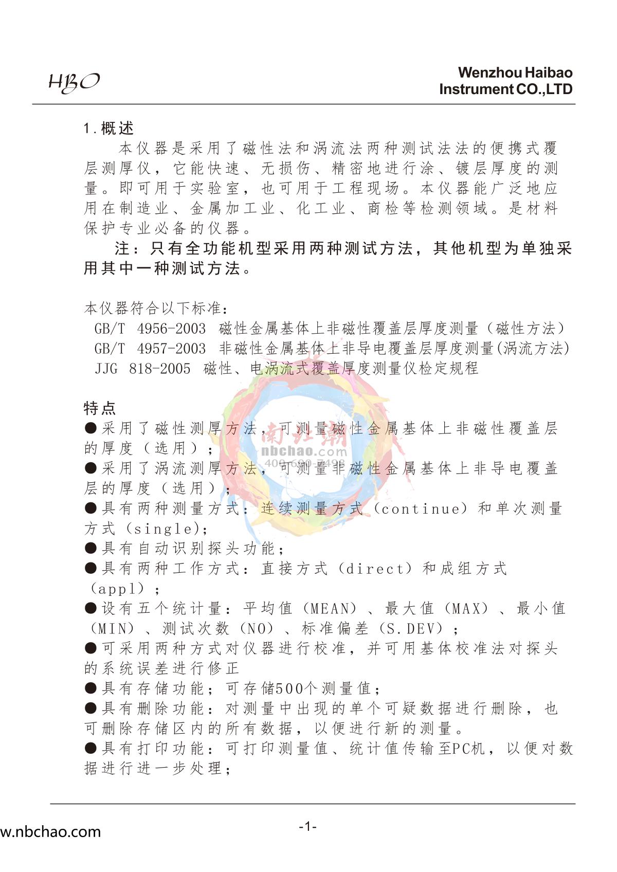 HBO HC-200 Coating Thickness Gauge Manual,OI