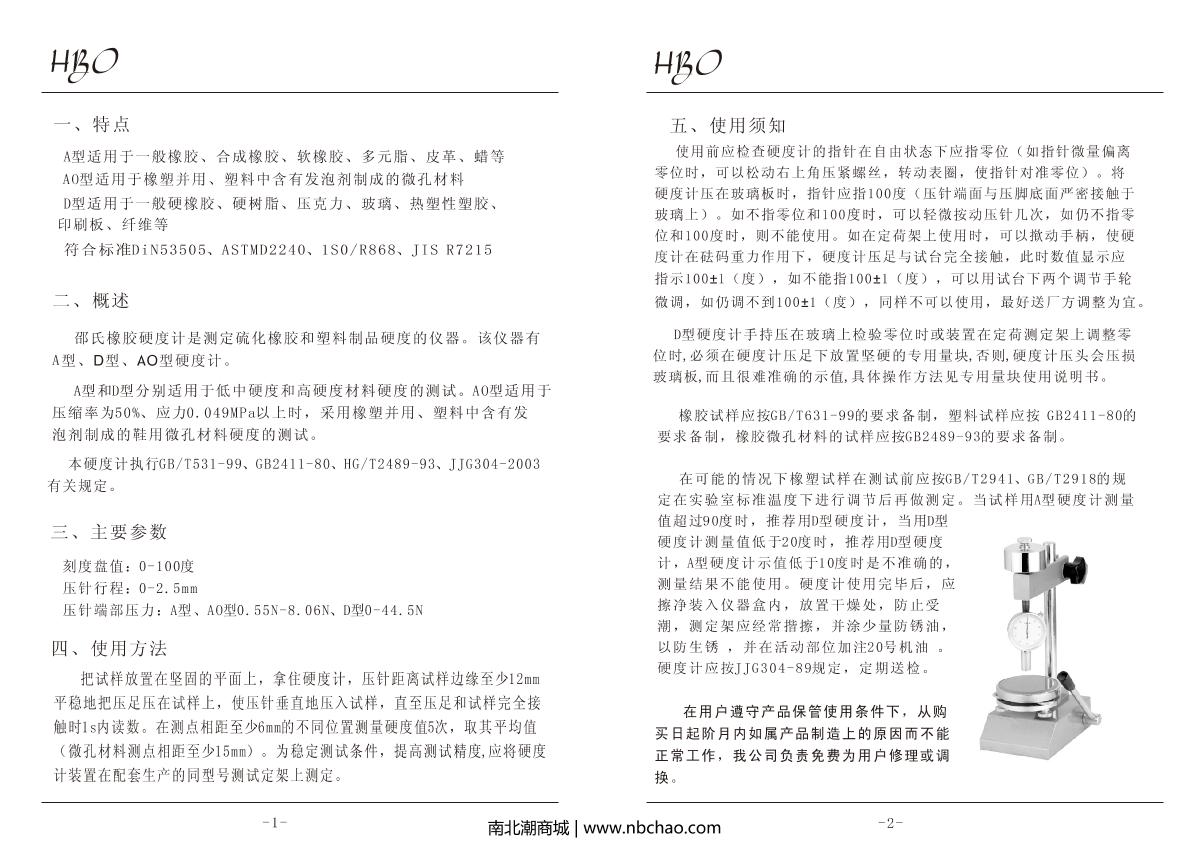 - 4HBO LX-C Rubber and plastic microporous material Hardness Gauge Manual