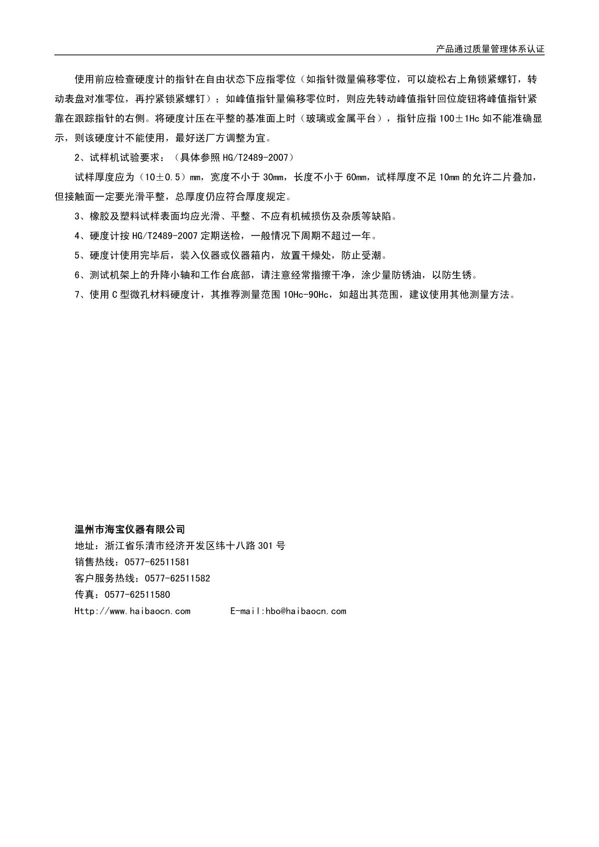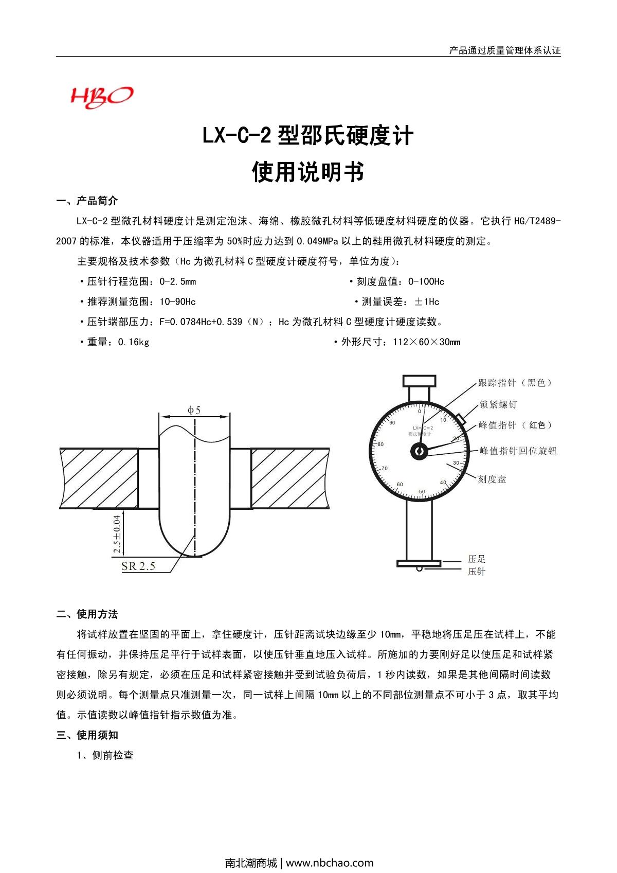 HBO LX-C-2 Shore Shore Durometer (double needle) Manual,OI