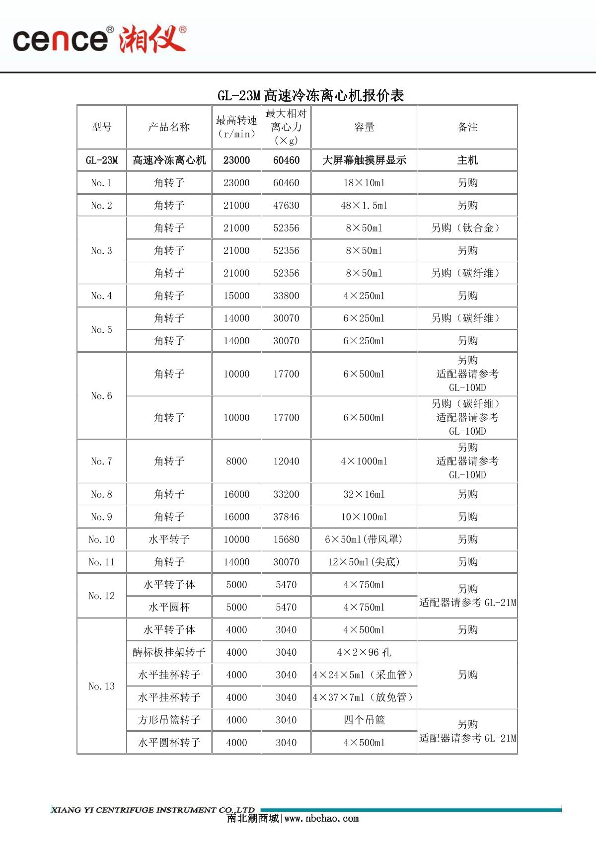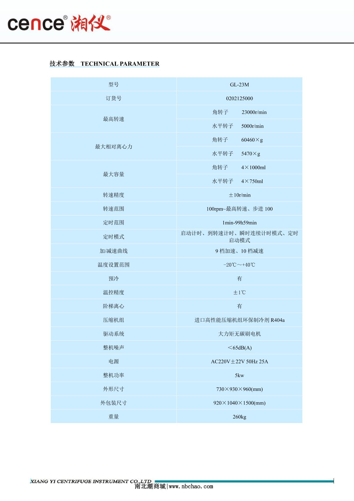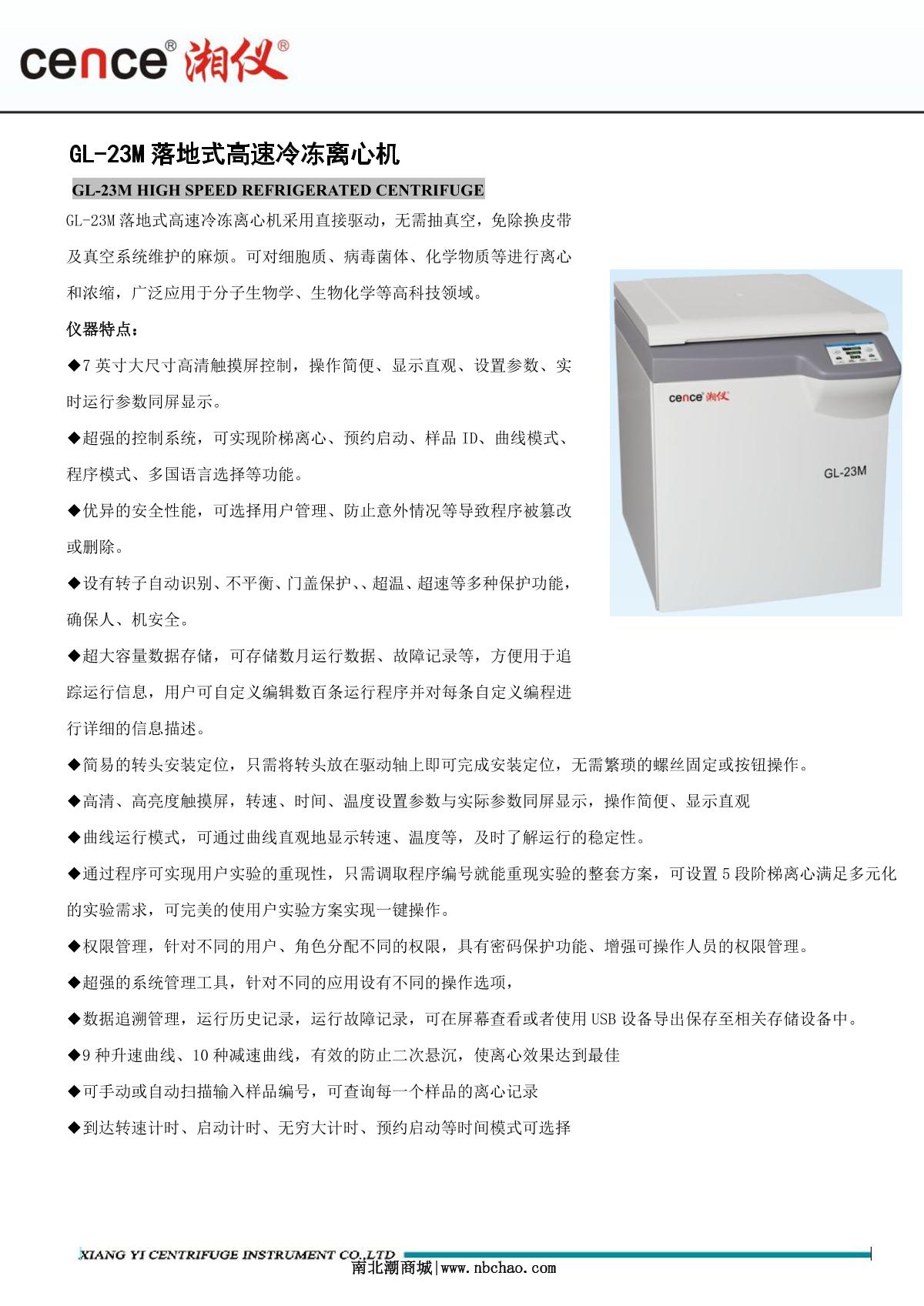 cence GL-23M High Speed Refrigerated Centrifuge brochure