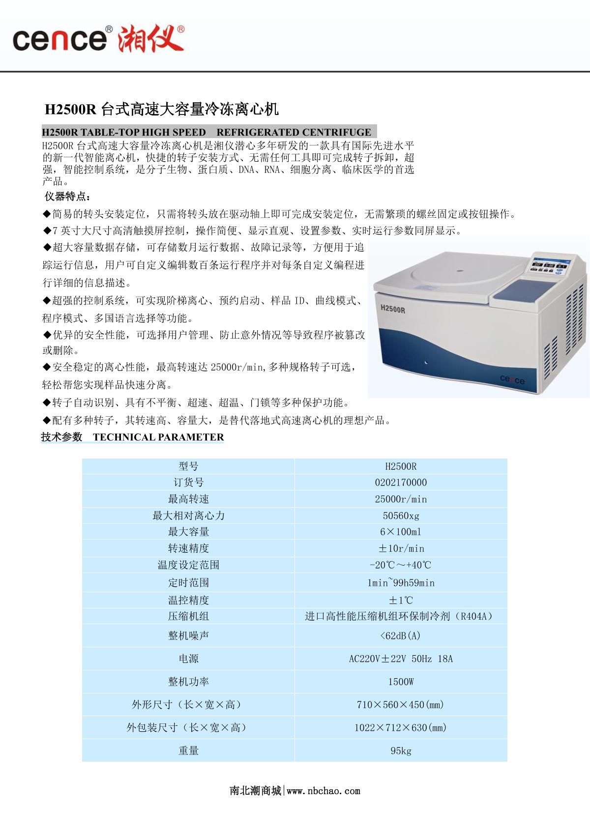 cence H2500R High Speed Refrigerated Centrifuge brochure