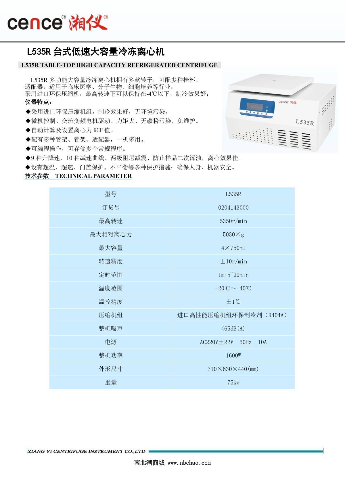 cence L535R Desktop Large Capacity Refrigerated Centrifuge brochure