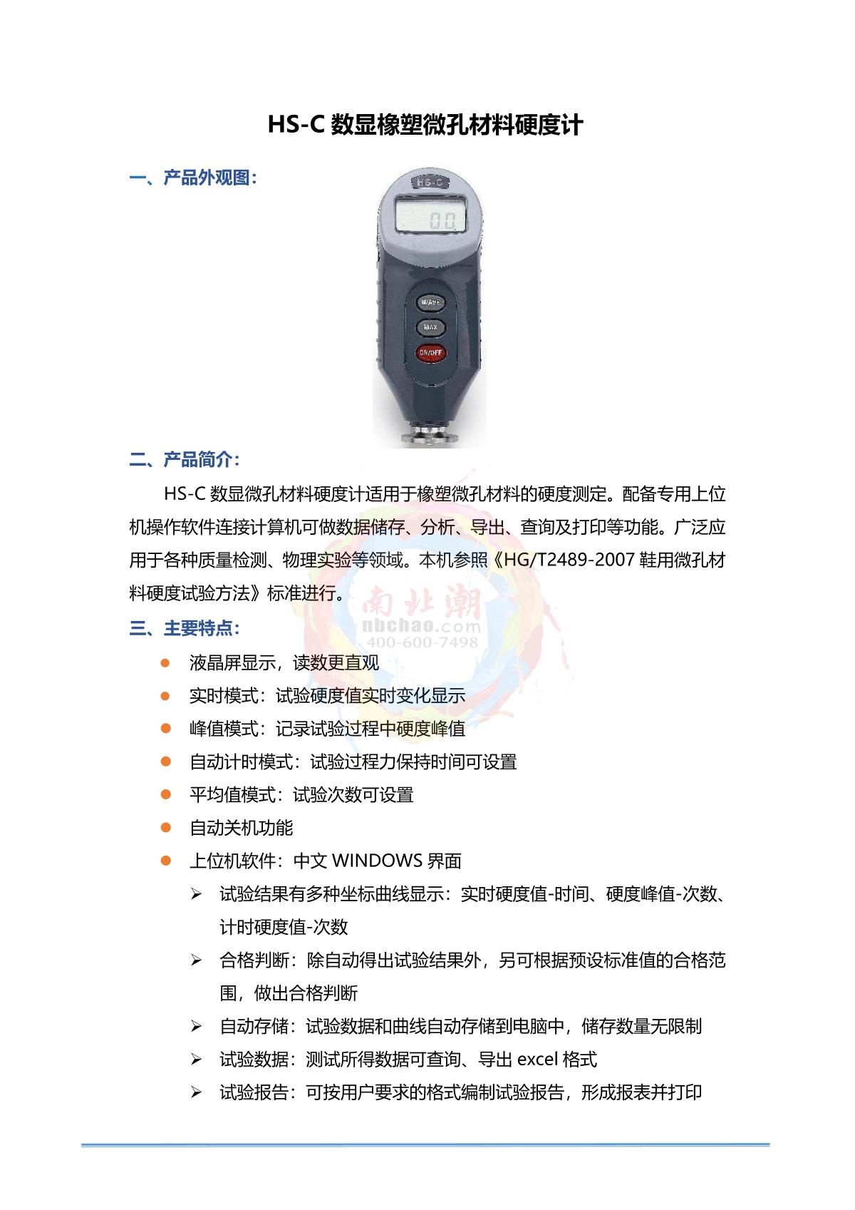 - 1HBO HS-C Digital rubber and plastic microporous material Hardness Gauge brochure