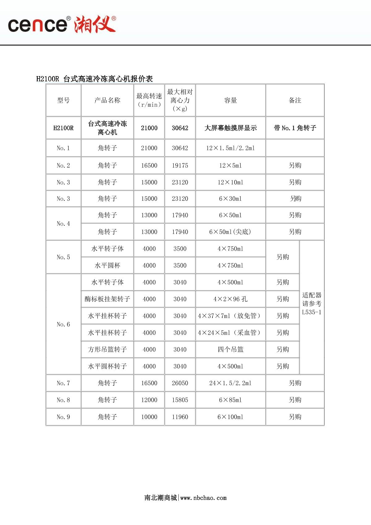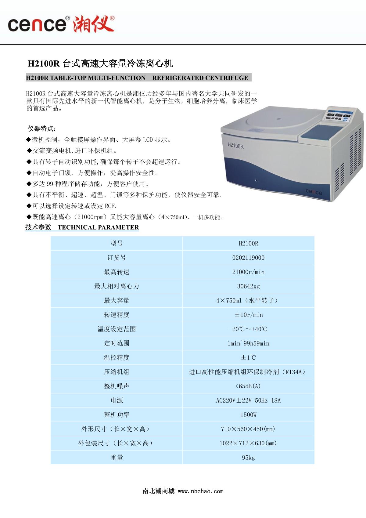 cence H2100R Desktop High Speed Large Capacity Refrigerated Centrifuge brochure