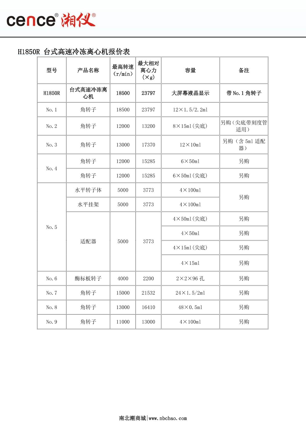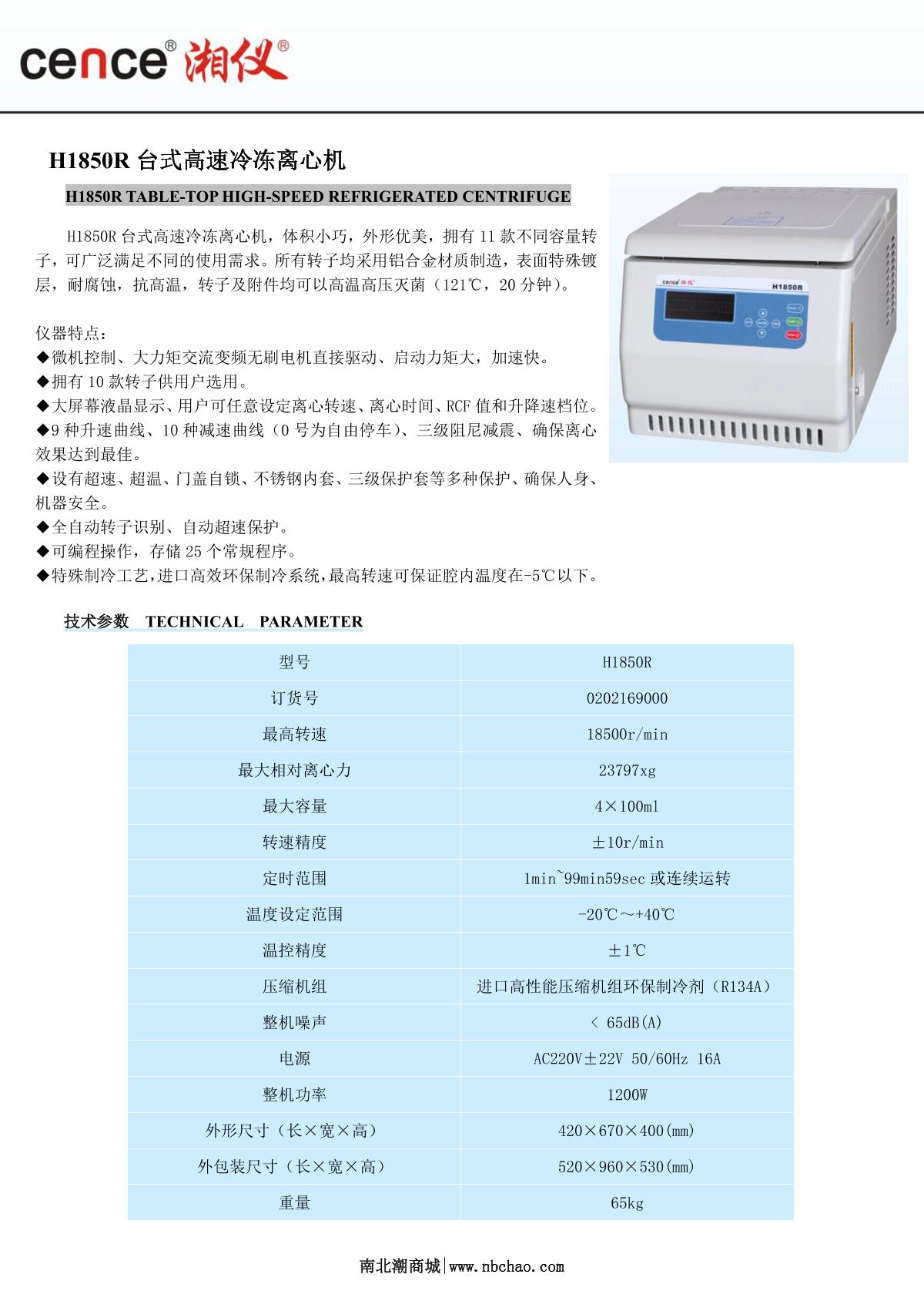 cence H1850R Desktop High Speed Large Capacity Refrigerated Centrifuge brochure