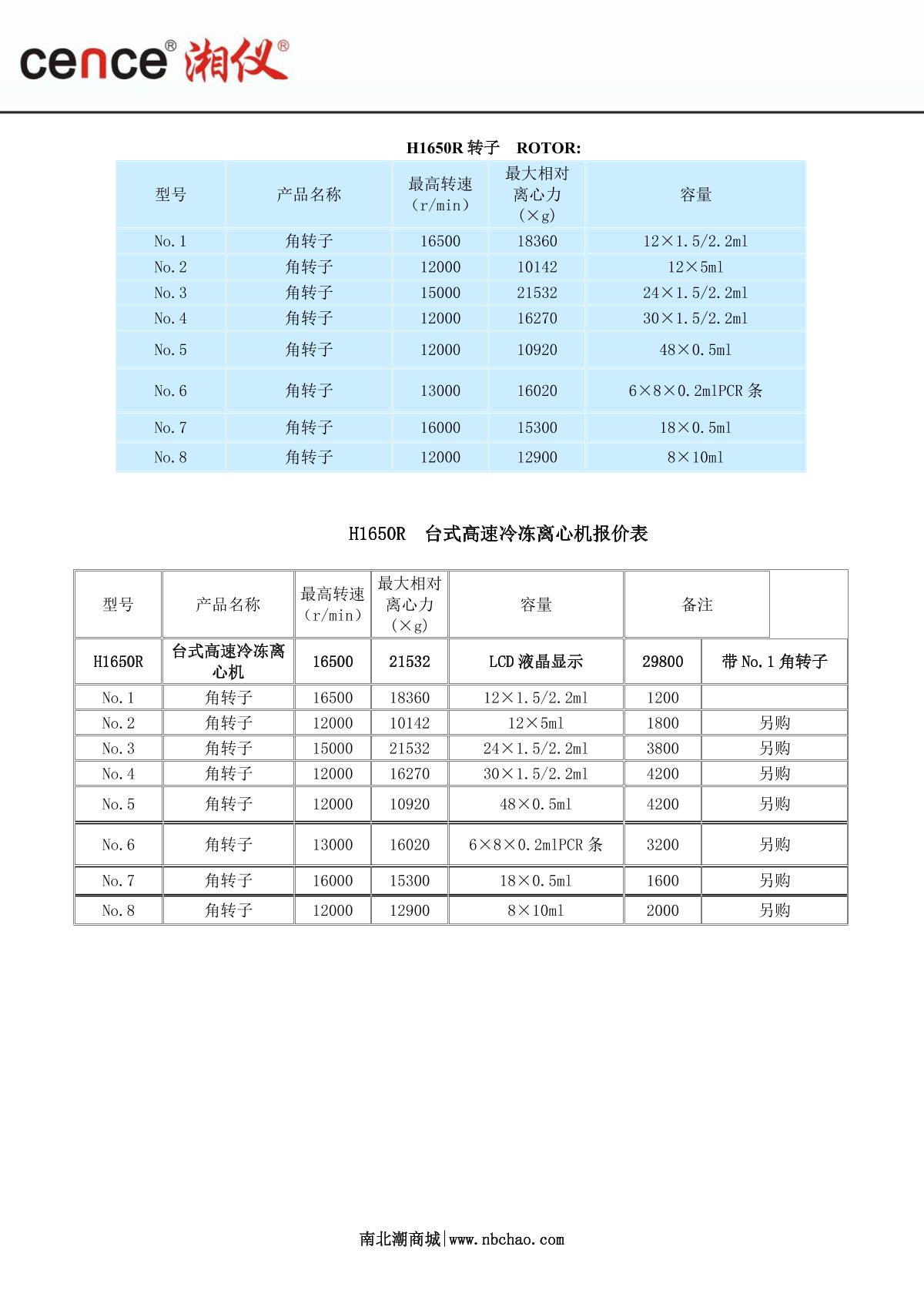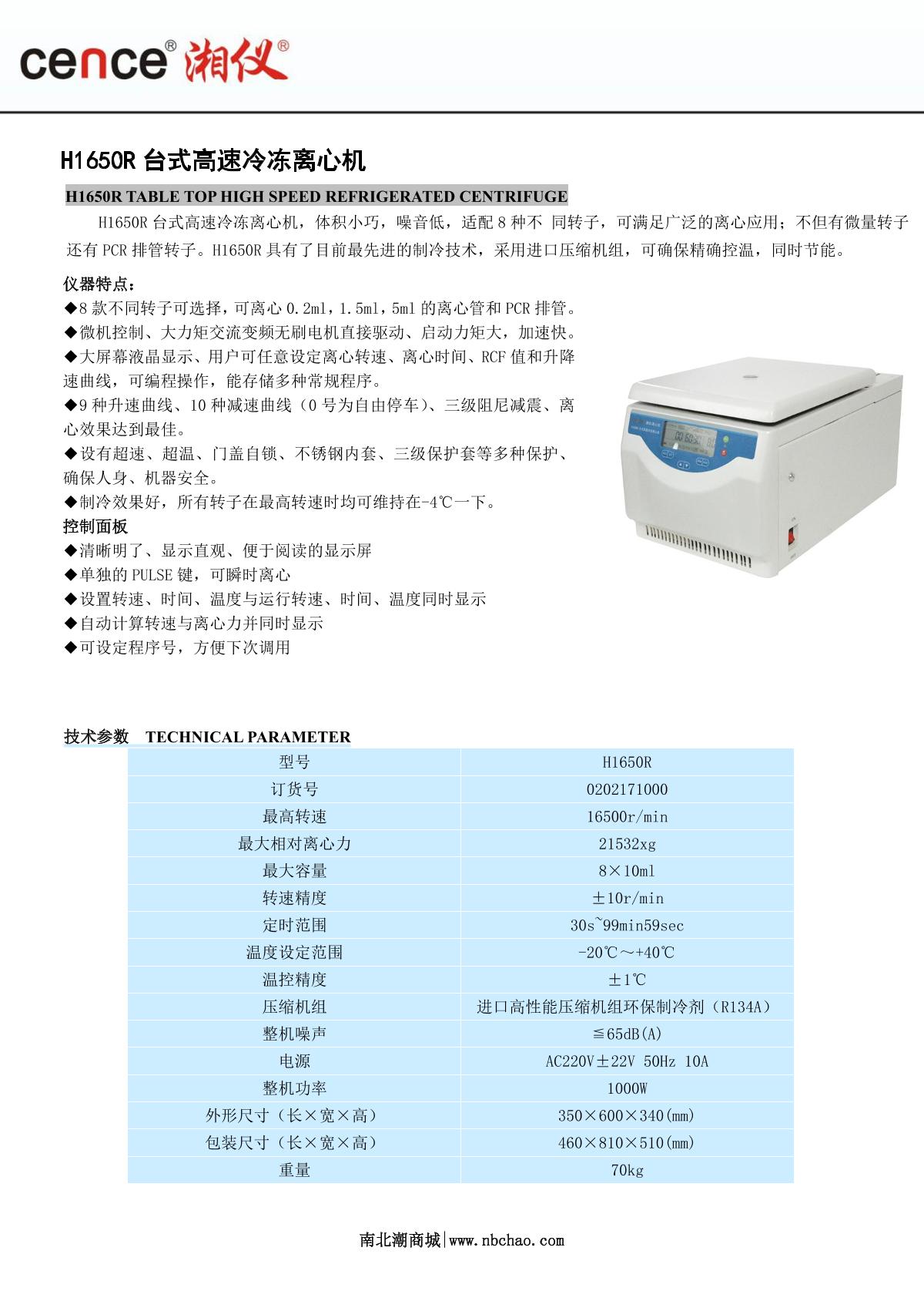 cence H1650R Desktop High Speed Large Capacity Refrigerated Centrifuge brochure