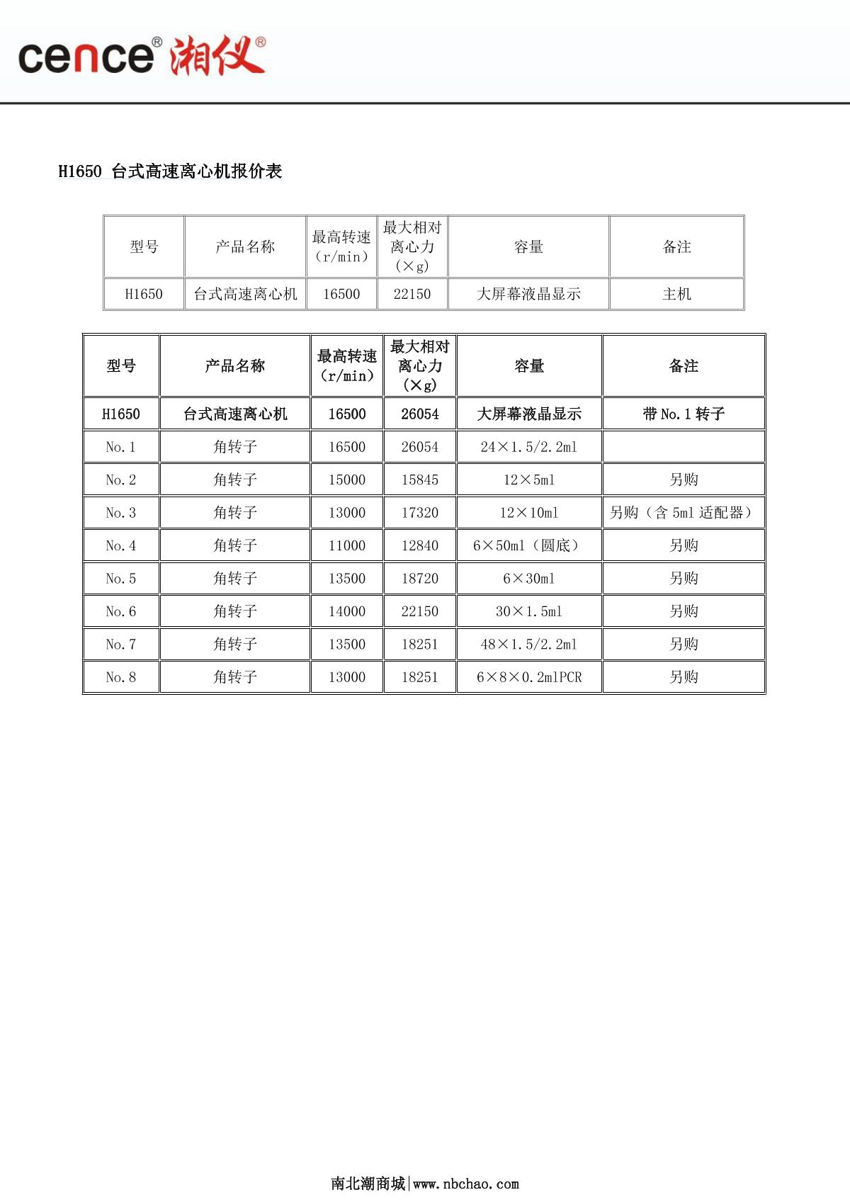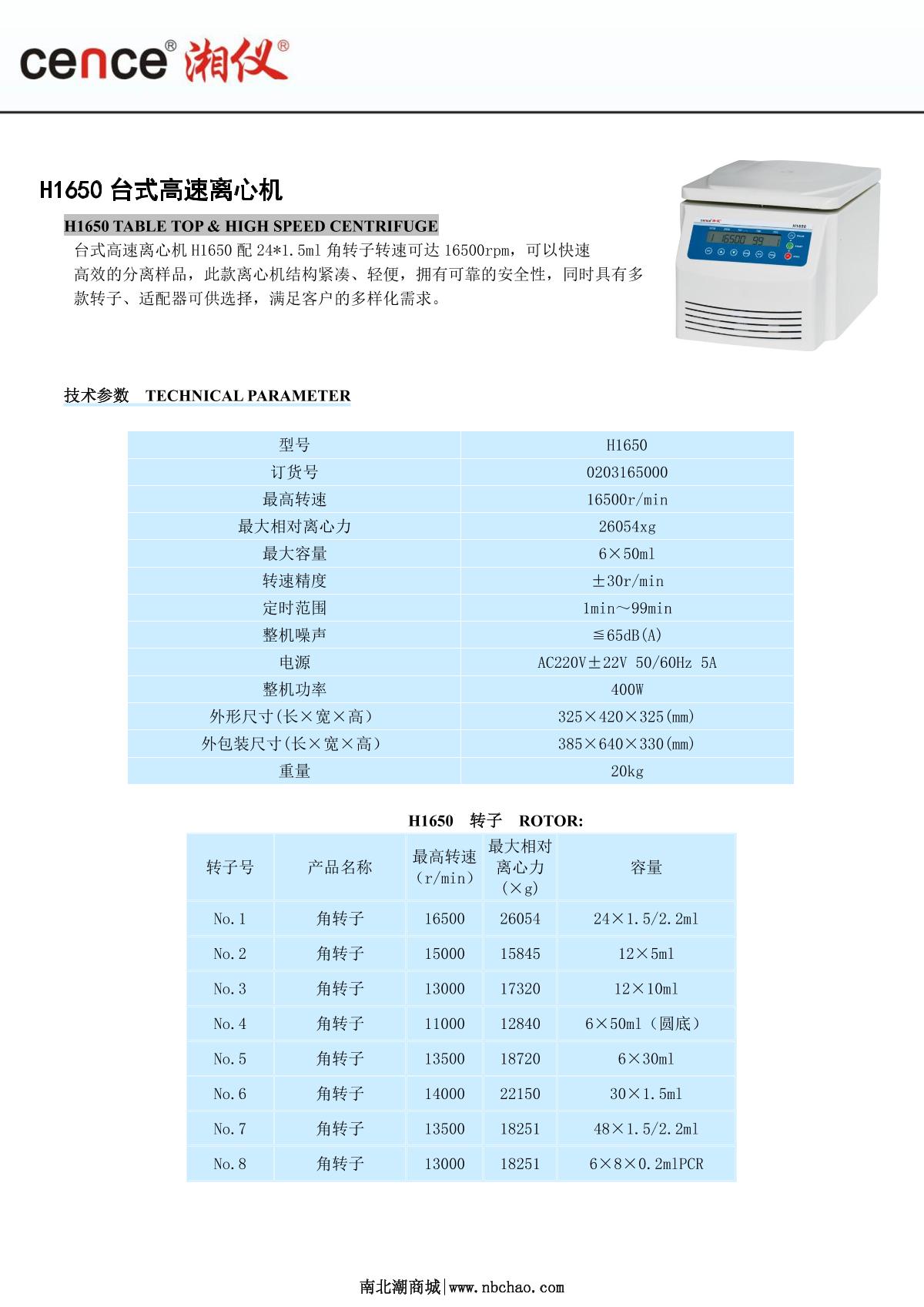 cence H1650 Desktop High Speed Centrifuge brochure