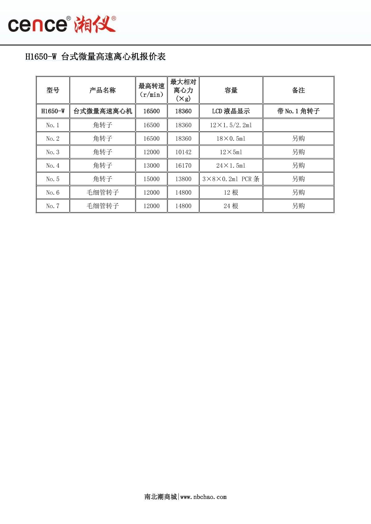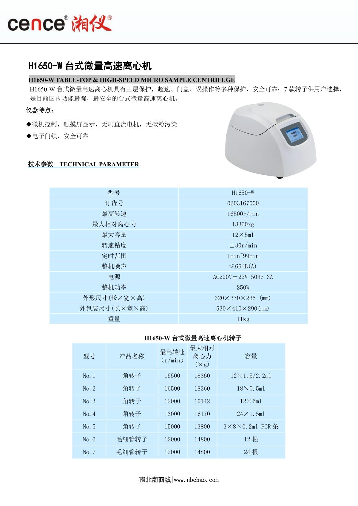 cence H1650-W Desktop Micro High Speed Centrifuge brochure