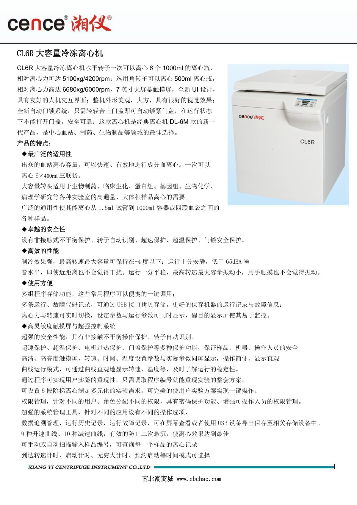 cence CL6R Large Capacity Refrigerated Centrifuge brochure