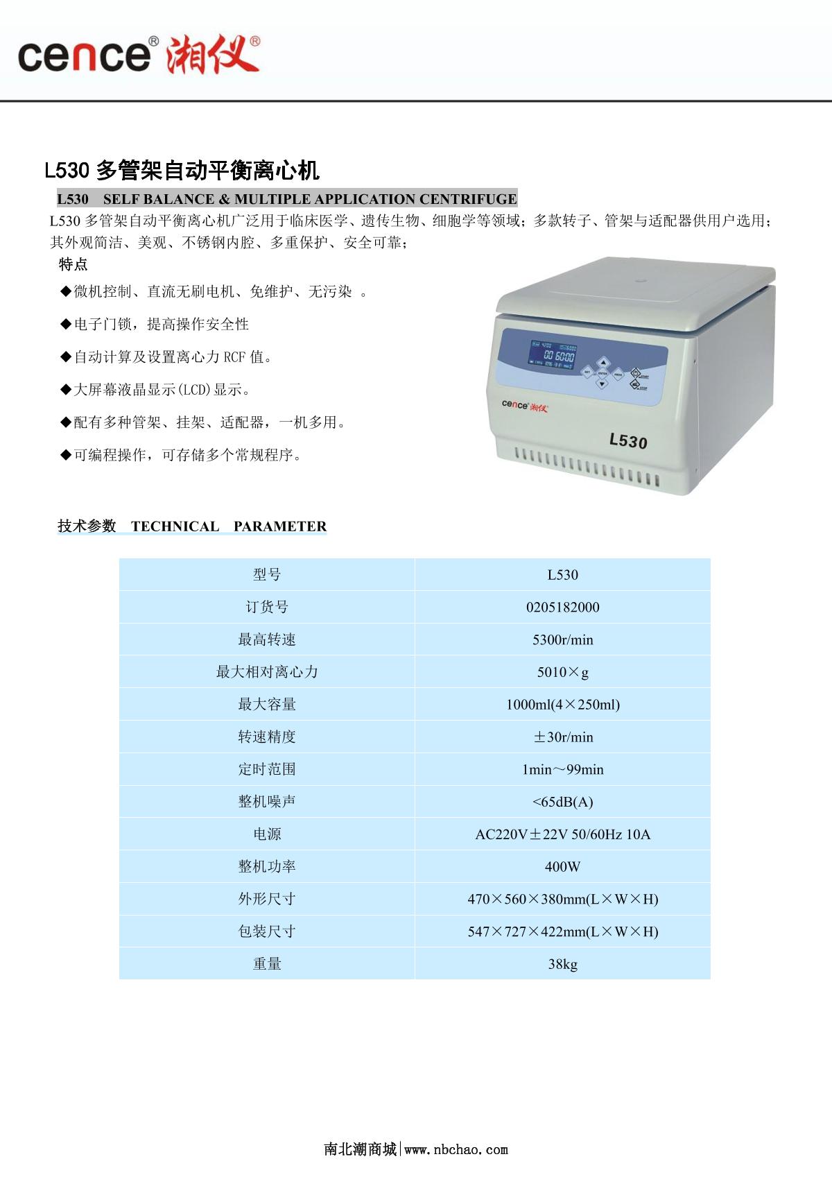 cence L530 Automatic equilibrating Centrifuge brochure