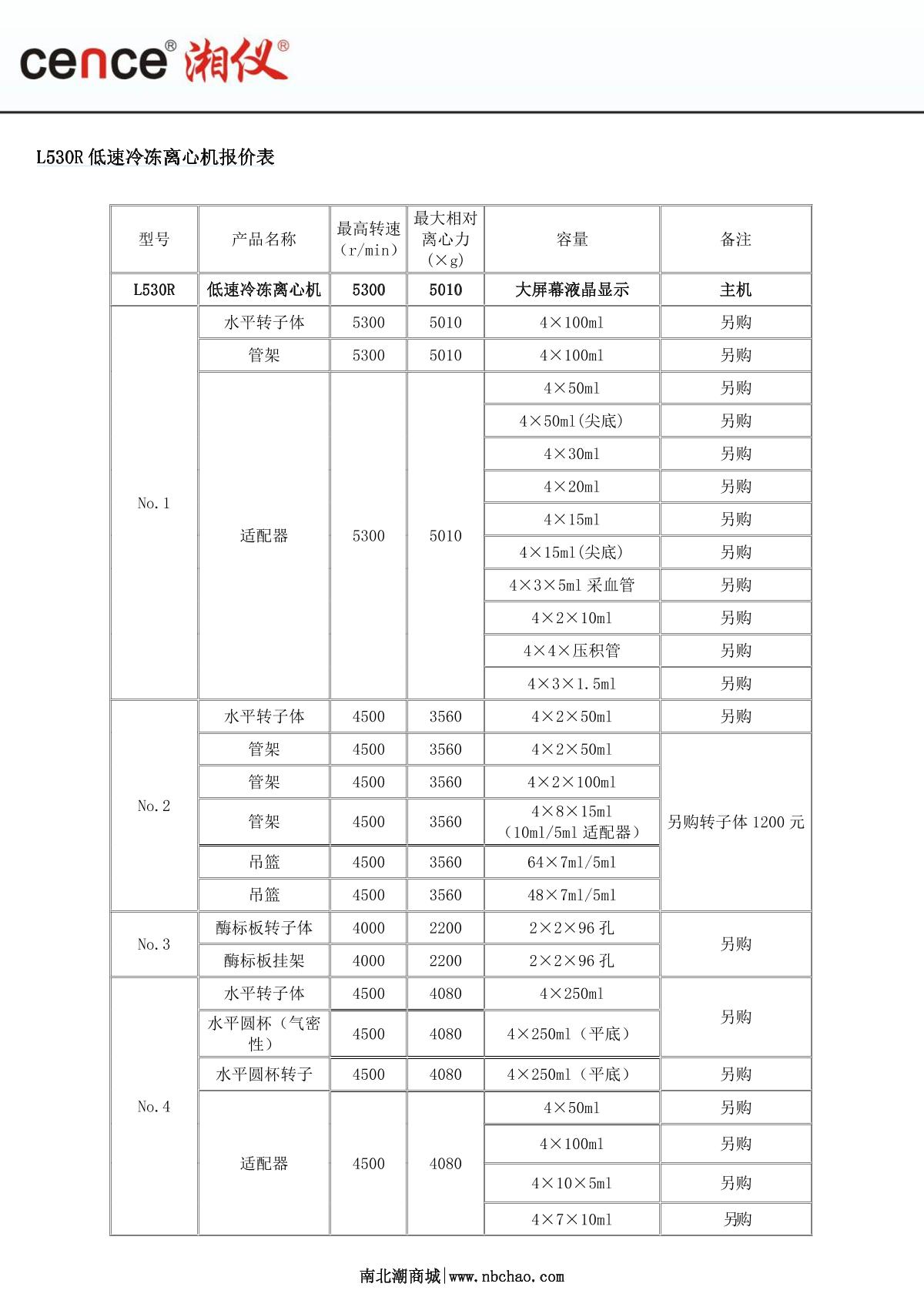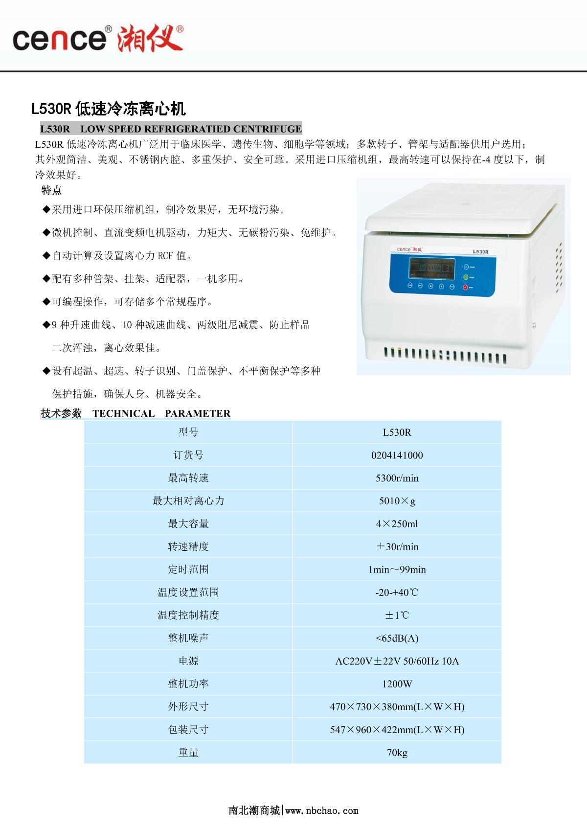cence L530R Low Speed Refrigerated Centrifuge brochure