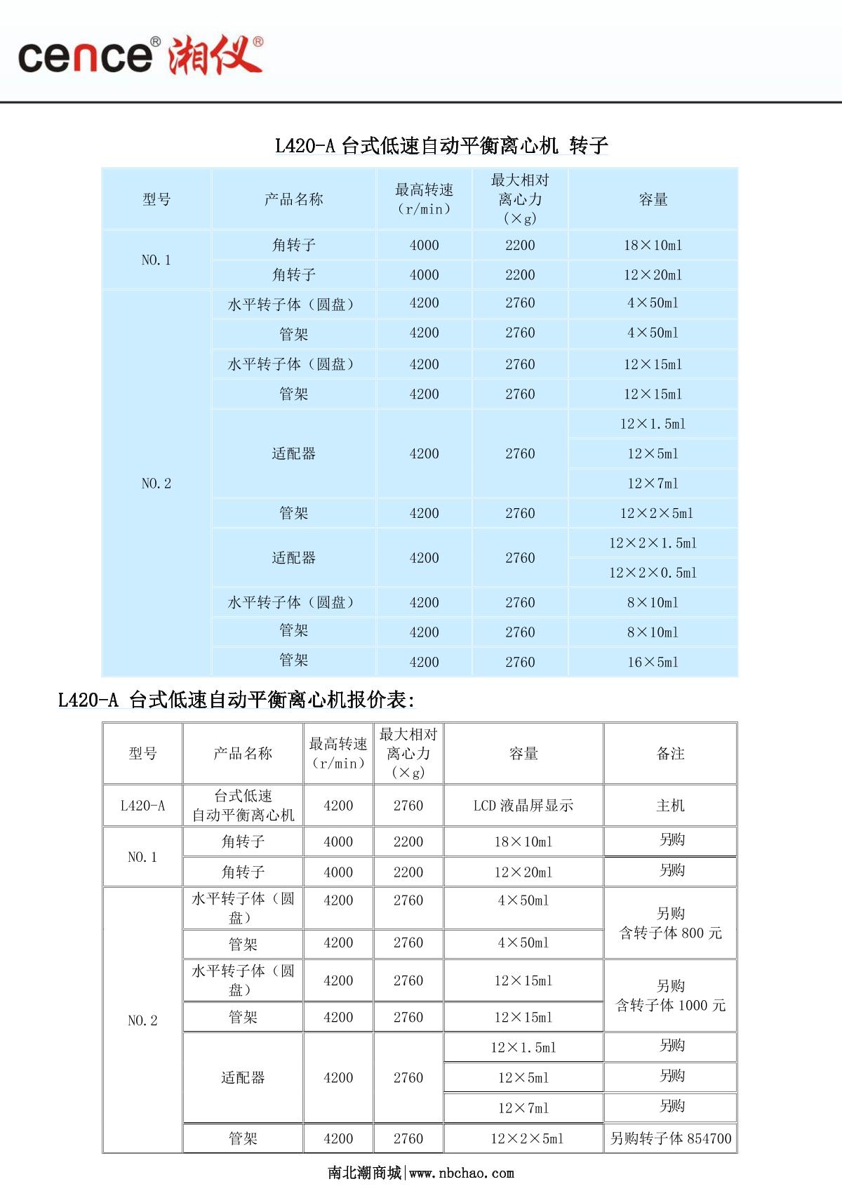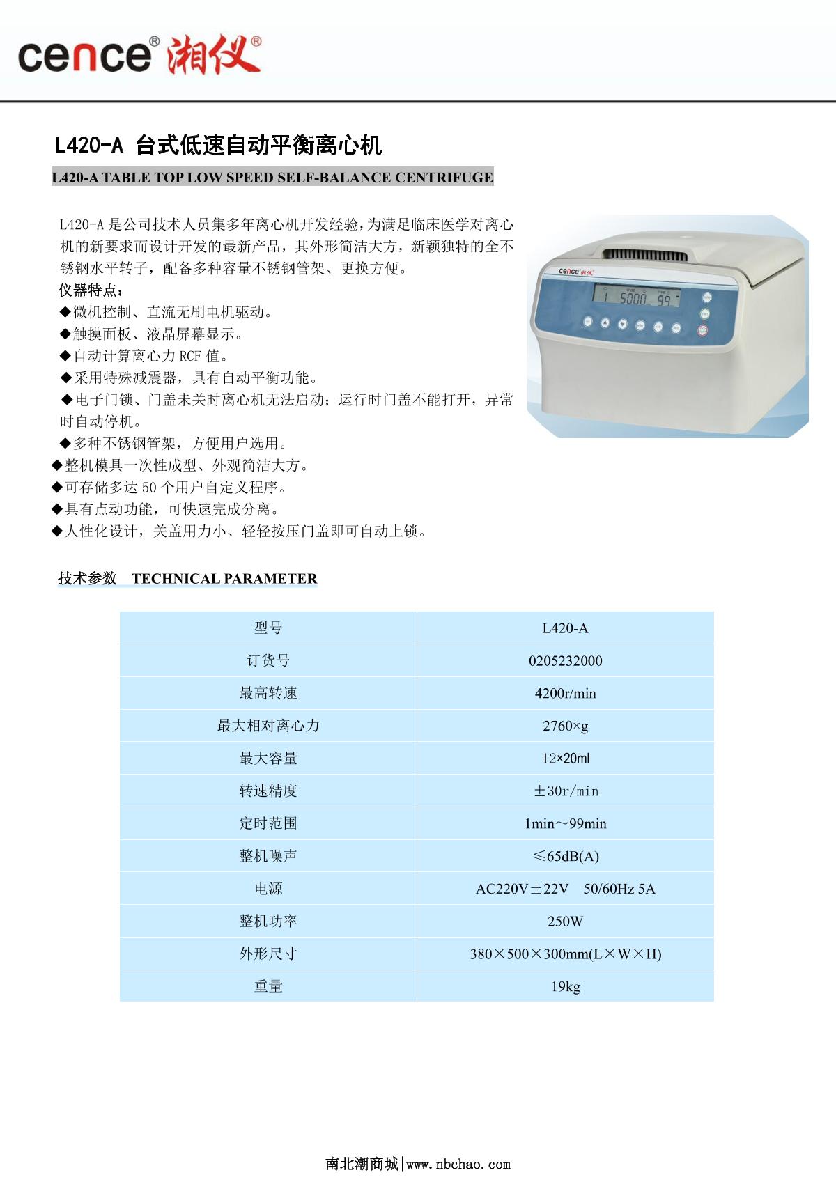 cence L420-A Desktop Low Speed Automatic equilibrating Centrifuge brochure