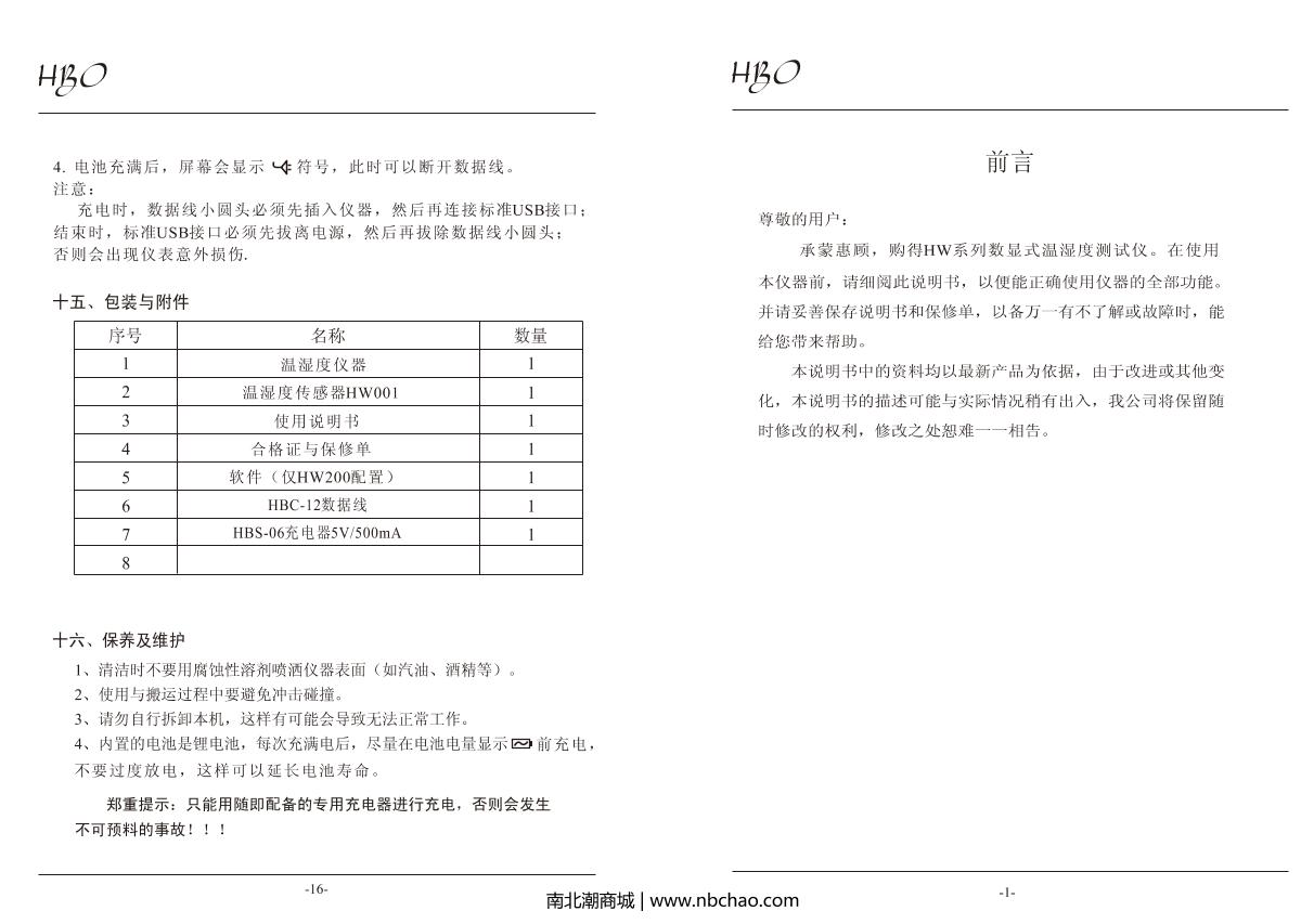 HBO HW200 Temperature and Humidity Recorder Manual,OI