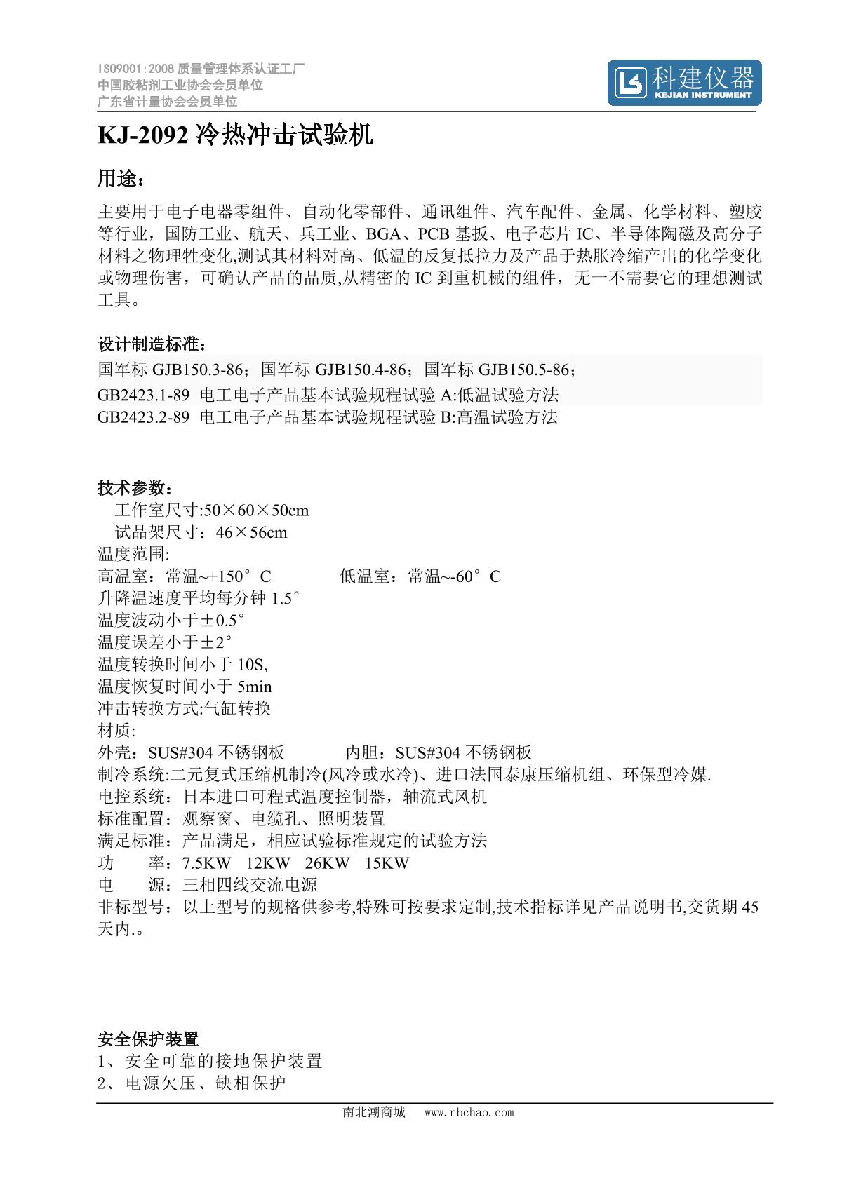 kejian KJ-2092 Thermal Shock Test Chamber brochure