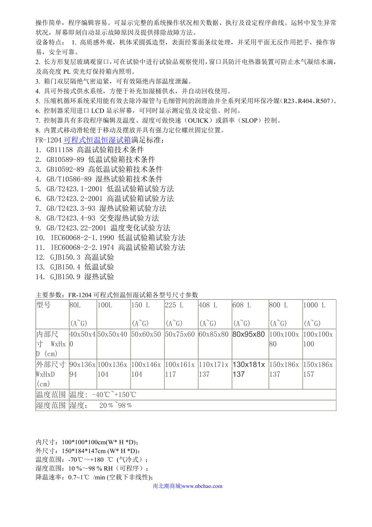 FaRui FR-1204-150 Programmable Constant Temperature & Humidity Test Chamber brochure